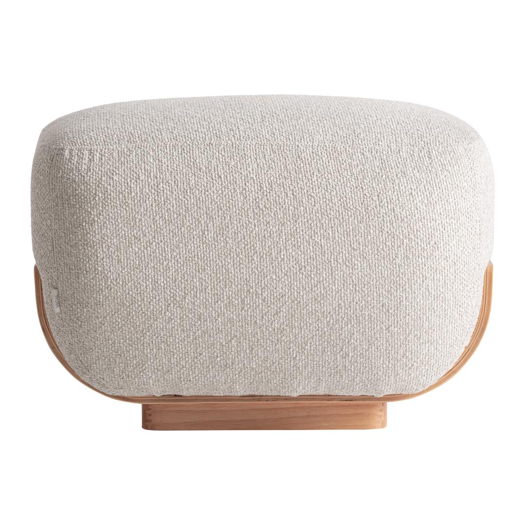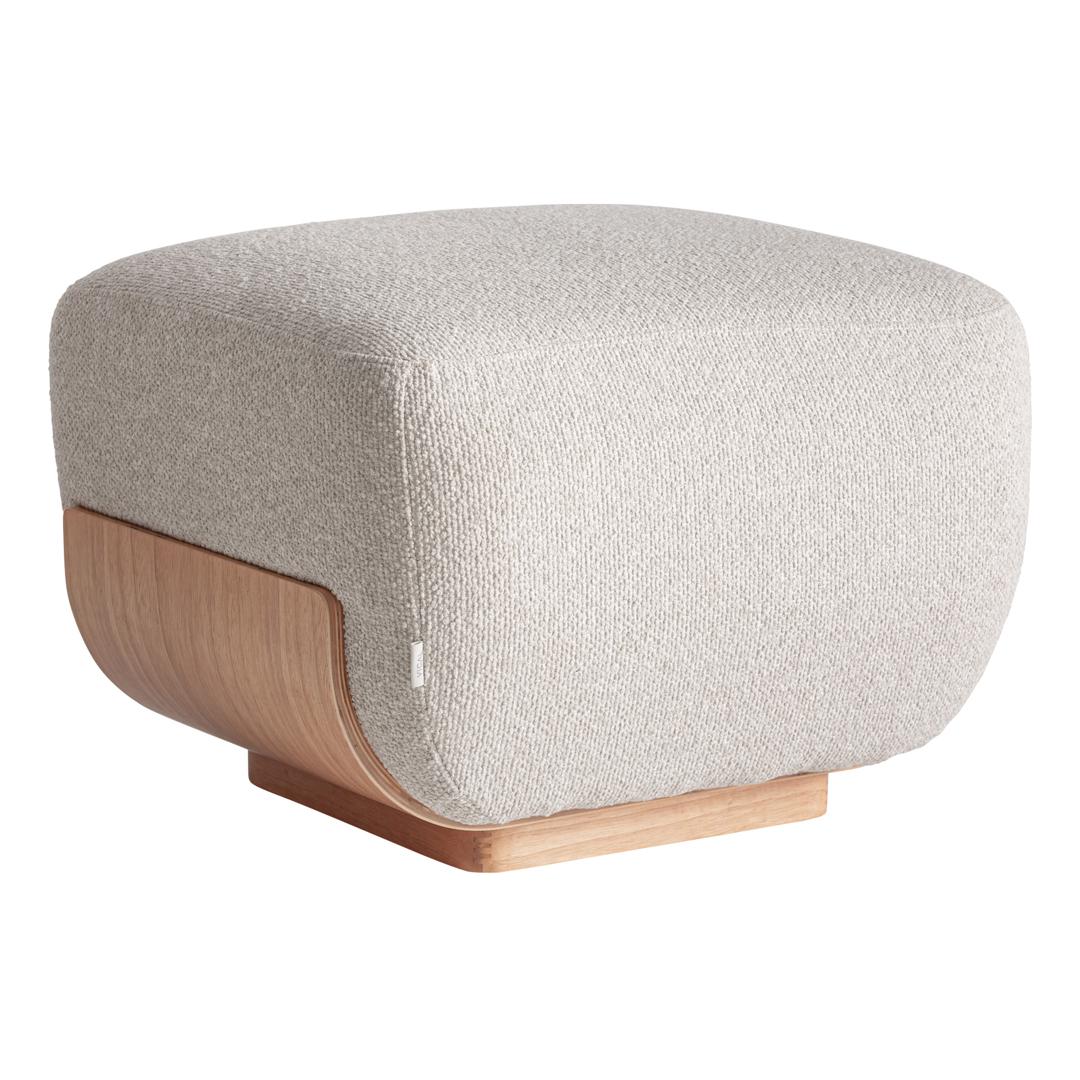 Современная подставка для ног Sasi, изготовленная из полиэстера кремового цвета с пятнистой текстурой, в сочетании со светло-коричневой фанерой с натуральной отделкой и пенополиуретаном. Ширина: 63 см, Глубина: 56 см, Высота: 43 см