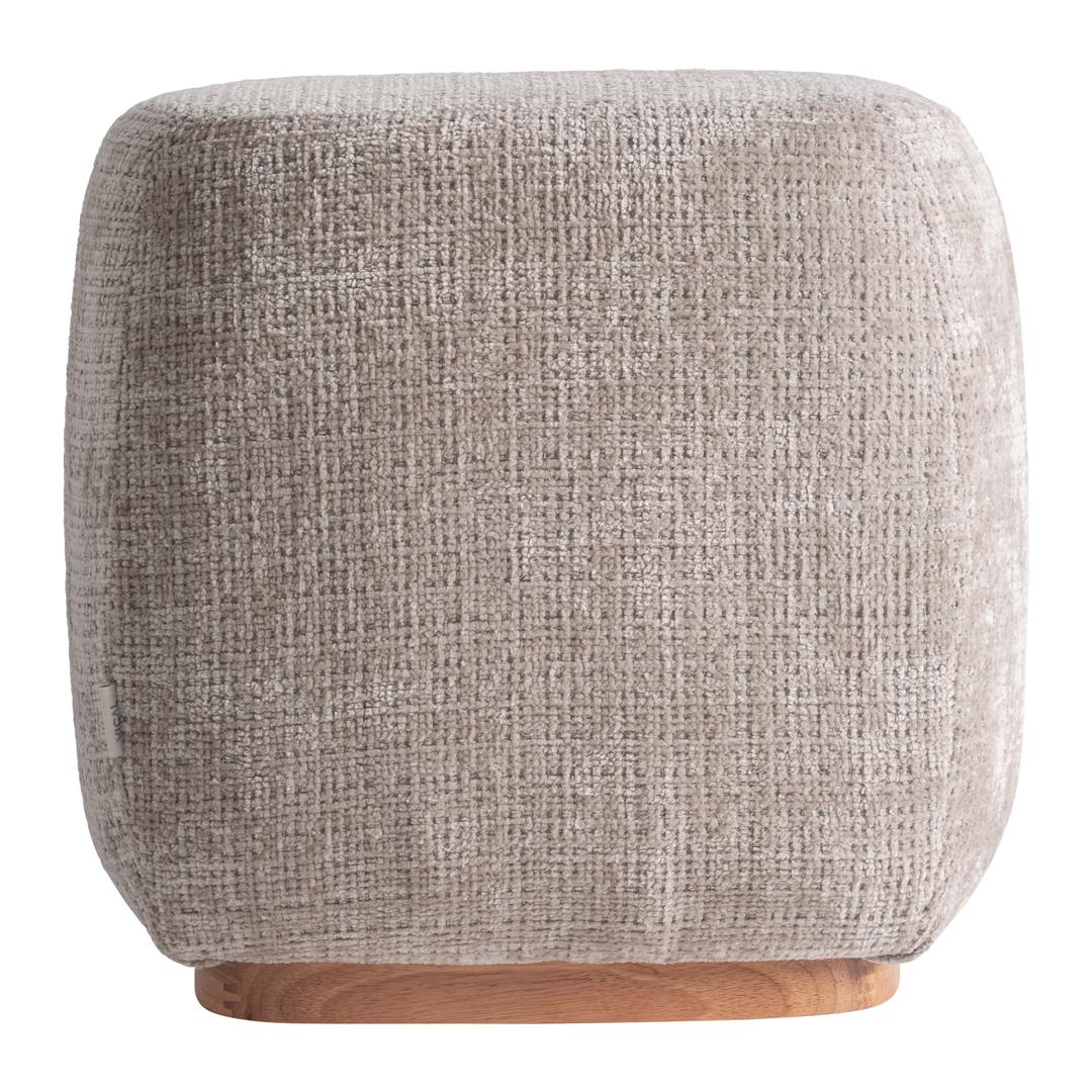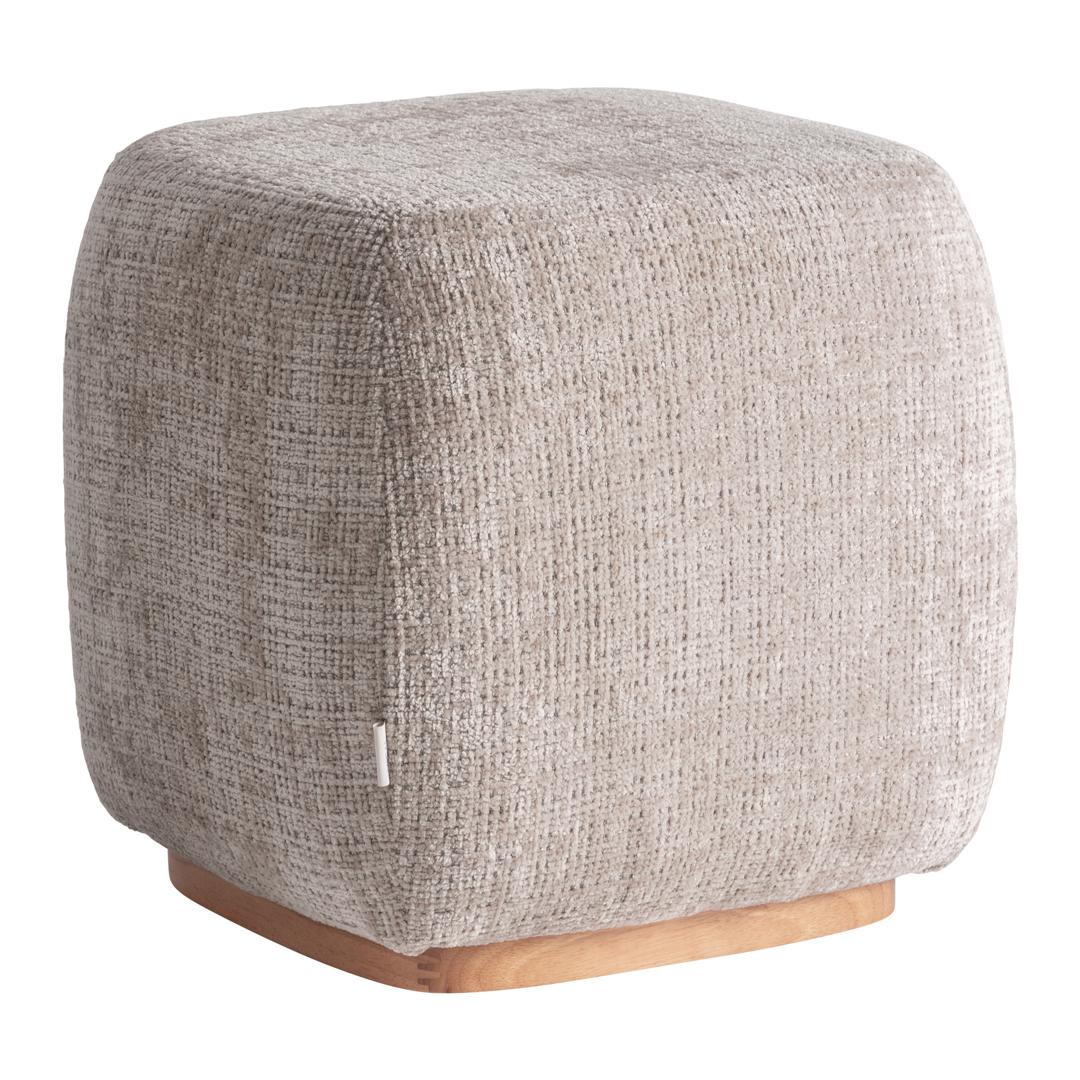 Современная подставка для ног Luli, изготовленная из полиэстера песочного цвета в сочетании со светло-коричневой фанерой с натуральной отделкой и пенополиуретаном. Ширина: 43 см, Глубина: 43 см, Высота: 43 см