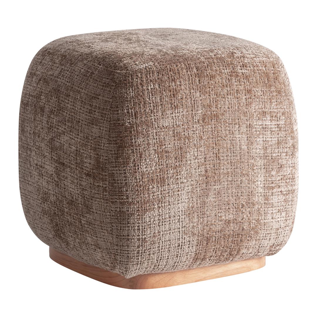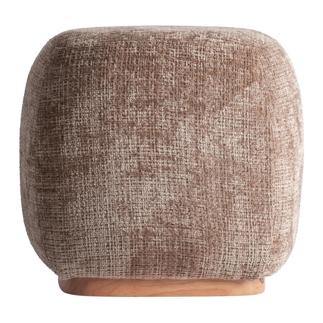 Современная подставка для ног Calypso, изготовленная из полиэстера бежевого цвета в сочетании со светло-коричневой фанерой с натуральной отделкой и пенополиуретаном. Ширина: 43 см, Глубина: 43 см, Высота: 43 см