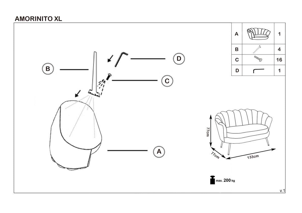 : ткань / Вес, кг: 24 / Высота (см): 77 / Гарантия, мес.: 12 / Глубина (см): 77 / Глубина сиденья (см): 56 / Количество коробок: 1 / Материал каркаса: металл / Материал сидения: ткань / Необходимость сборки: да / Размер упаковки 1: 1,31/0,57/0,78 / Страна производитель: Китай / Цвет: серый / Ширина (см): 133