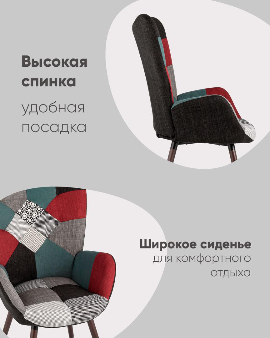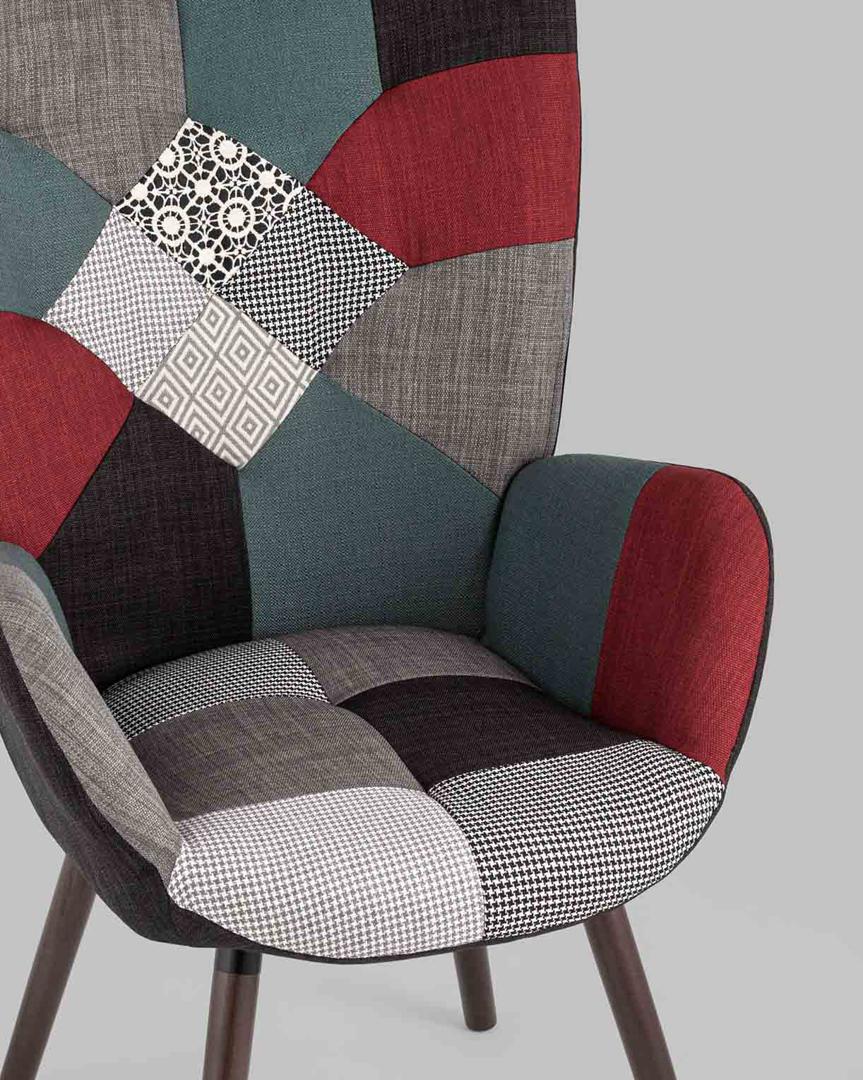 Кресло Stool Group Гранд пэчворк, каркас из натурального дерева, мягкая спинка, широкие ножки и сиденье, обивка из ткани