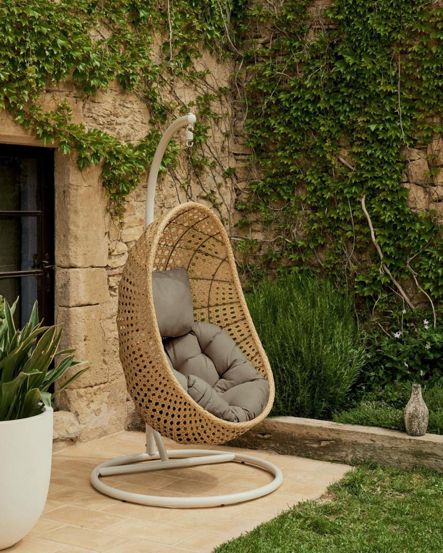 Кресло подвесное La Forma (ех Julia Grup) Cira Светло-серое подвесное кресло с натуральной отделкой арт. 156931