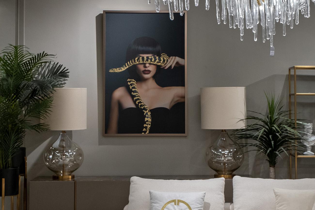 Подарок Garda Decor 89VOR-GIRL/SNAKE-1 Холст "Девушка со змеей"120х80см,багет латунь, поталь арт. 89VOR-GIRL/SNAKE-1
