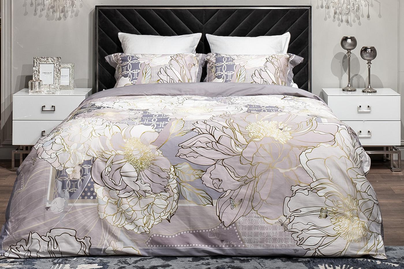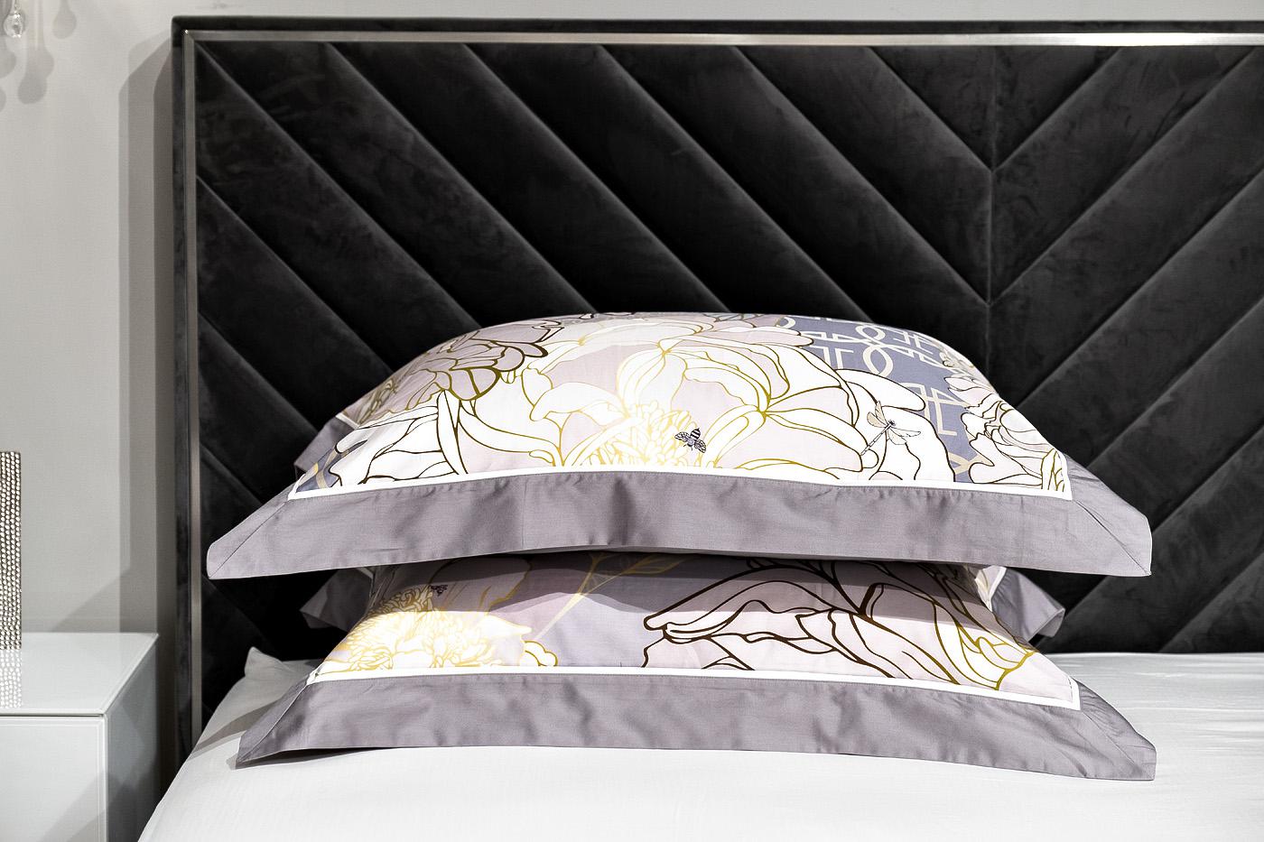 Подарок Garda Decor 130HB-00028 Комплект наволочек сатин принт Пионы серый 50*70(2шт) арт. 130HB-00028