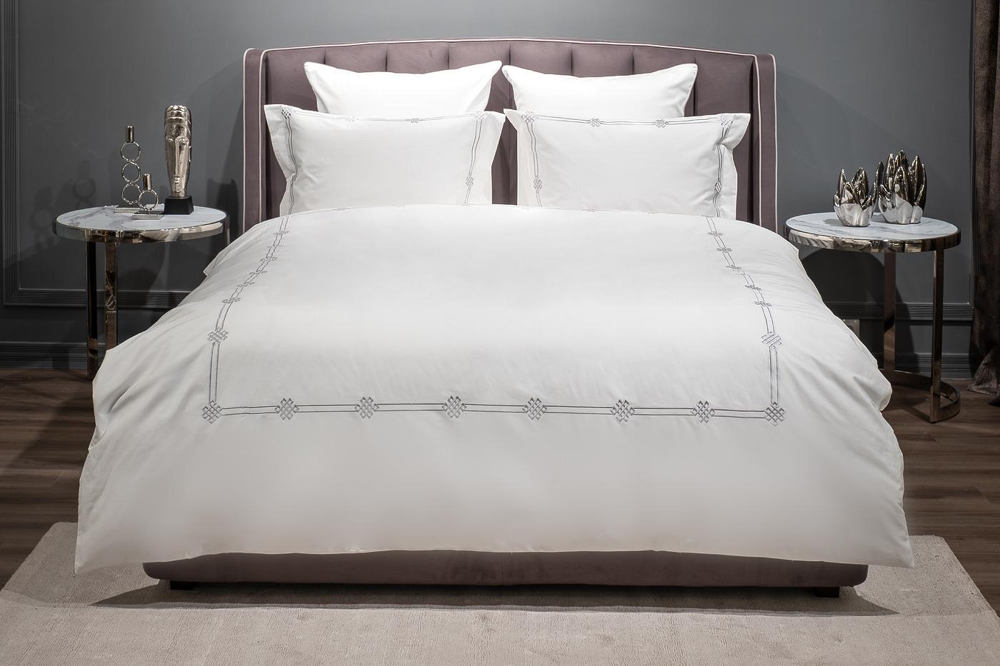 description-full - Классический комплект «Арктик» изготовлен из 100% хлопка-сатина высокой плотности 400ТС.В данный комплект входят: Пододеяльник 145*210-2шт, наволочка 50*70-2 шт и простыня 270*280. Белое белье украшает изящная серая вышивка, которая обрамляет пододеяльник и наволочки по периметру. Этот сложный узор – переплетённые линии с элементами Арт-деко. Модель привлекает внимание красивым контрастом между белой тканью и орнаментом оттенка старинного серебра. Вышивка на постельном белье - дорогой элемент, который придает белью более выраженный вид, создавая объем и, подчеркивая, ценность постельного белья. Оригинальная геометрия орнамента подойдет и для современного интерьера, и для эффектного стиля ар-деко, и для классического дизайна. Уход: Машинная стирка при максимальной температуре 40С, мягкий режим. Стирать моющими средствами для цветных тканей. Не отбеливать. Барабанная сушка возможна, обычная температура. Гладить с изнаночной стороны при максимальной температуре утюга. Сухая химчистка ...