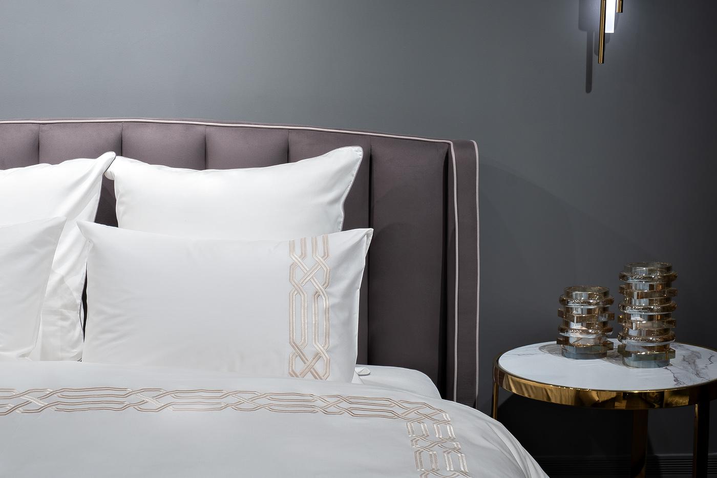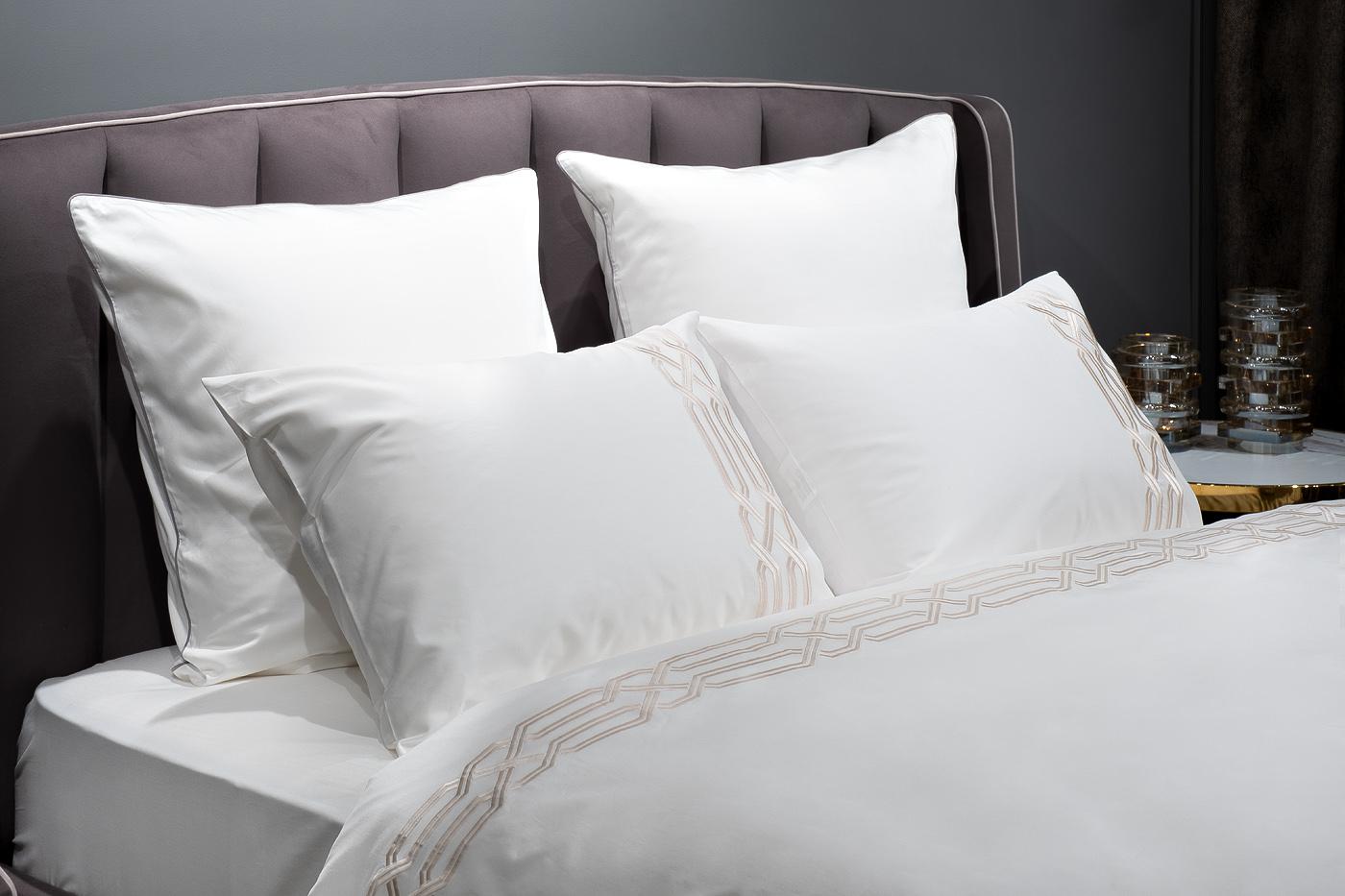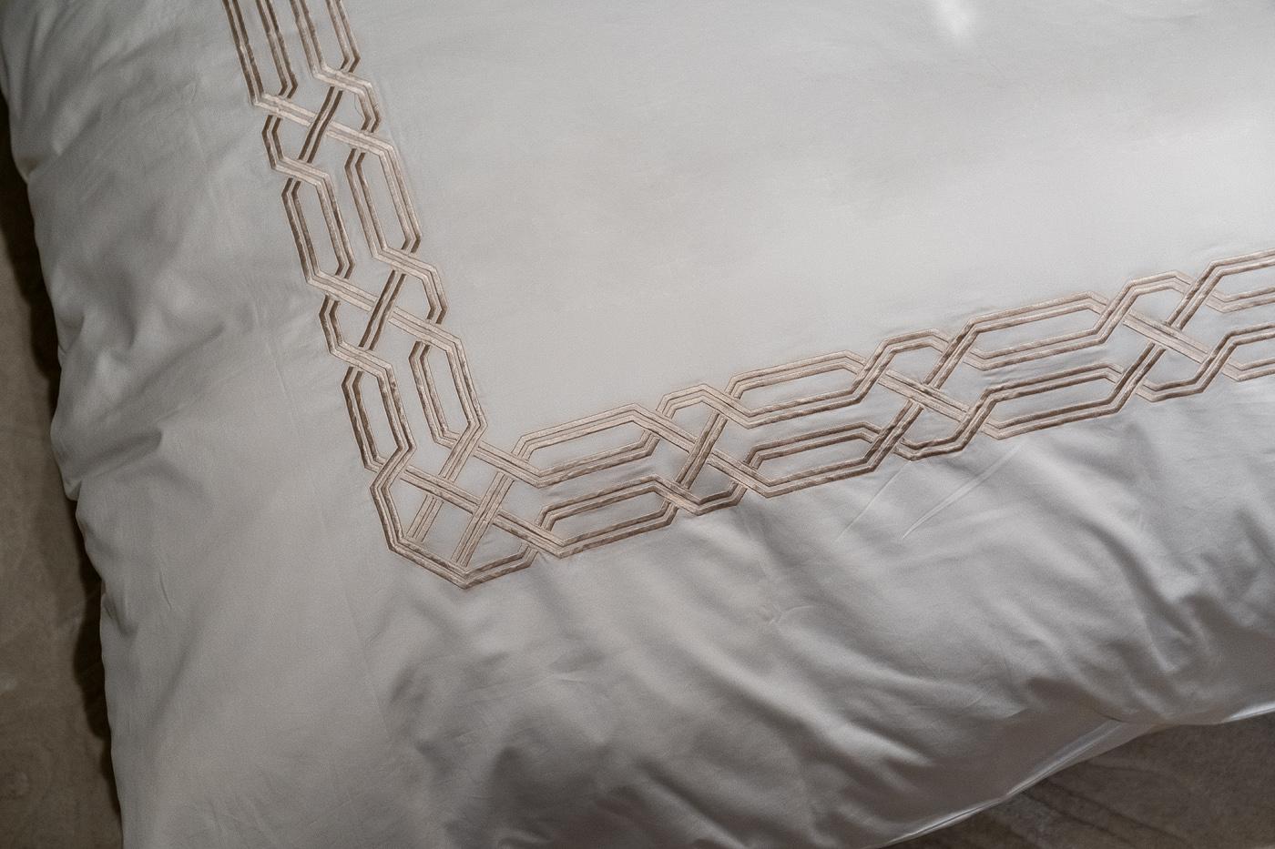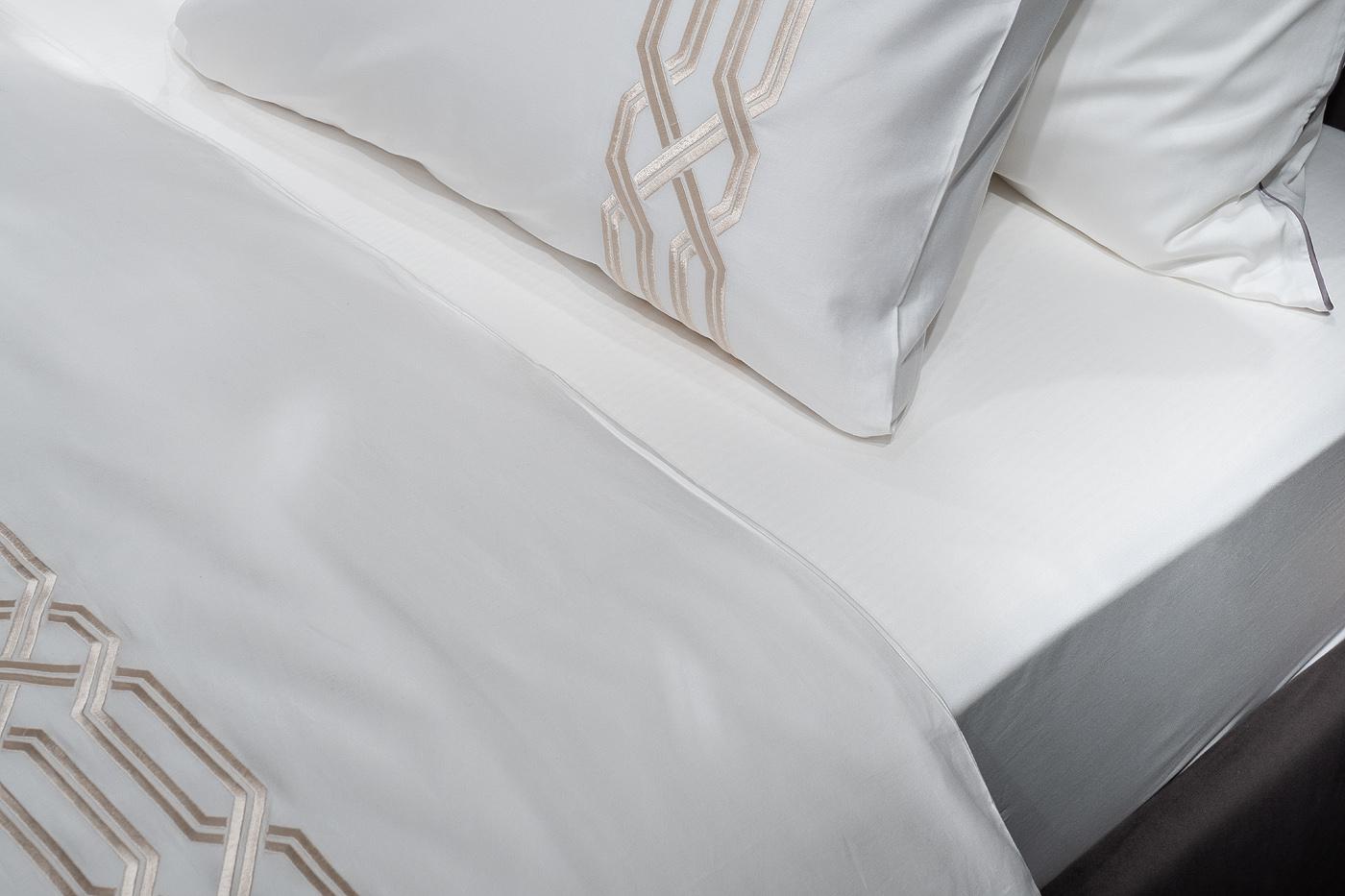 description-full - Классический комплект «Паллада» изготовлен из 100% хлопка-сатина высокой плотности 400ТС. Белое белье украшает изящная золотистая вышивка, которая обрамляет пододеяльник по периметру, а на наволочках представлен только с одной стороны. Модель привлекает внимание красивым контрастом между белой тканью и орнаментом оттенка античного золота. Вышивка на постельном белье - дорогой элемент, который придает белью более выраженный вид, создавая объем и, подчеркивая, ценность постельного белья. Оригинальная геометрия орнамента подойдет и для современного интерьера, и для эффектного стиля ар-деко, и для классического дизайна. В данный комплект входят: Пододеяльник 200*220, наволочка 50*70-2шт и простыня 270*280. Уход: Машинная стирка при максимальной температуре 40С, мягкий режим. Стирать моющими средствами для цветных тканей. Не отбеливать. Барабанная сушка возможна, обычная температура. Гладить с изнаночной стороны при максимальной температуре утюга. Сухая химчистка запрещена.