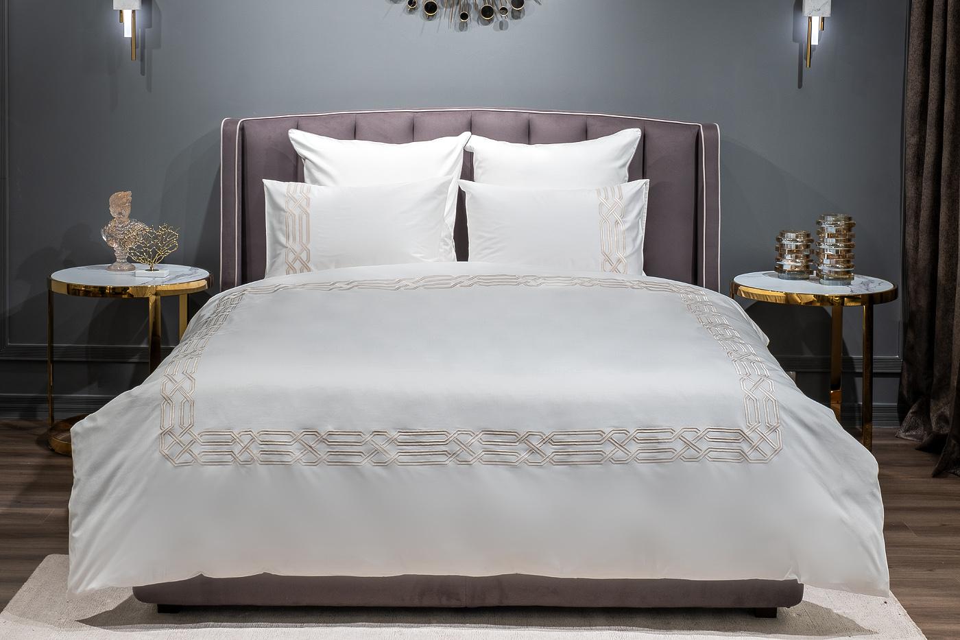 Подарок Garda Decor 175SMR-17504 Комплект постельного белья с вышивкой Паллада, золотой, Двуспальный евро (200*220) арт. 175SMR-17504