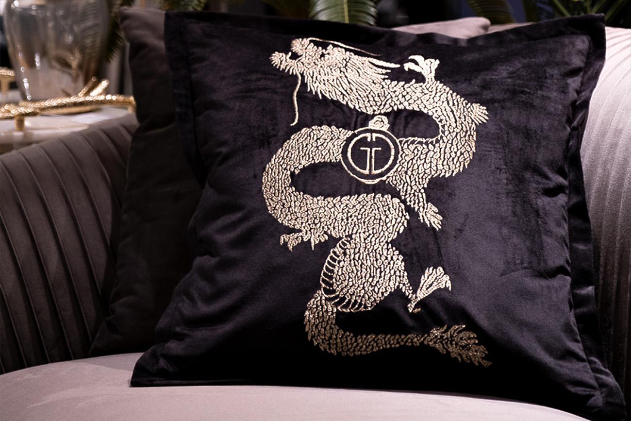 description-full - Декоративная подушка с вышивкой – прекрасное дополнение дивана или кресла. Домашний декор, который добавляет интерьеру мягкого уюта и индивидуальности. Черная подушка на диван обладает большим интерьерным потенциалом, отличается первоклассным качеством и эффектным дизайном. Главная ее изюминка – стильная вышивка дракона золотом в китайском стиле. Она выполнена из качественного текстильного материала и сохраняет первоначальную красоту годами. На сайте Garda Decor можно купить диванные подушки разного цвета и стандартных размеров, с отделкой из бисера, с геометрическими узорами и вышивкой.