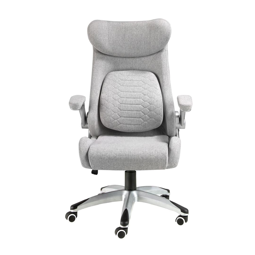 Современное поворотное офисное кресло с сиденьем и спинкой, обитыми серой тканью. Оно оснащено подлокотниками для большего комфорта. Благодаря ножкам из серебристо-серого ПВХ и регулируемой по высоте подставке, оно станет незаменимым элементом вашего рабочего места, не жертвуя при этом самым авангардным стилем. Колесики обеспечивают дополнительную практичность, необходимую во время работы или учебы.