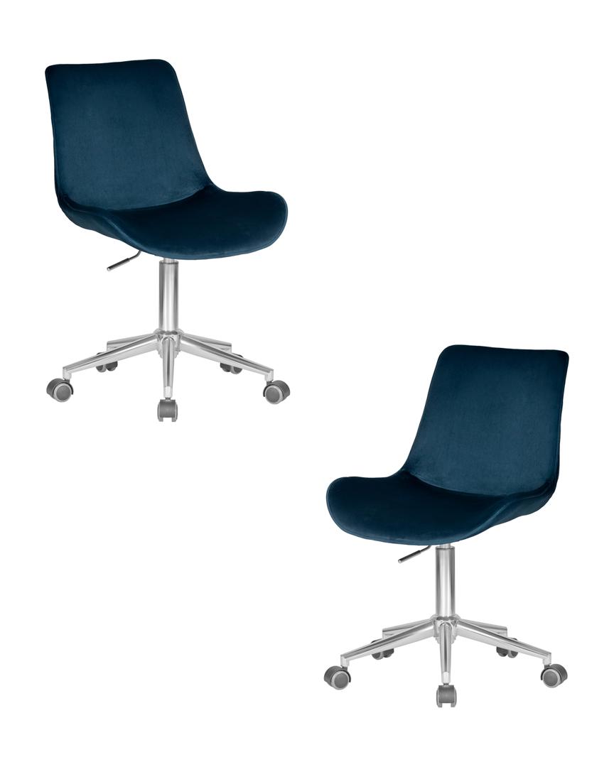 Наименование товара с характеристикой - Набор 2 шт Кресло офисное DOBRIN DORA, синий велюр (1922-20), хромированная сталь