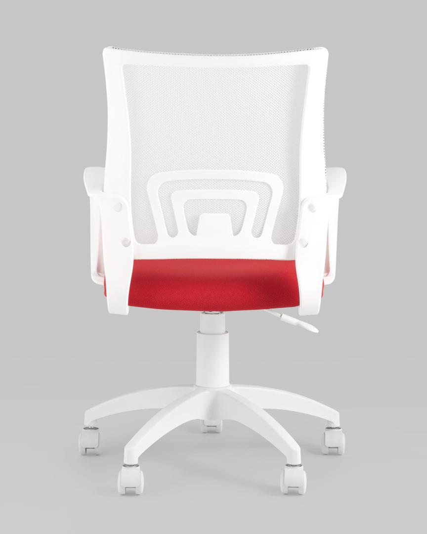 Кресло компьютерное офисное Topchairs ST-BASIC-W спинка белая сетка сиденье красная ткань крестовина белый пластик