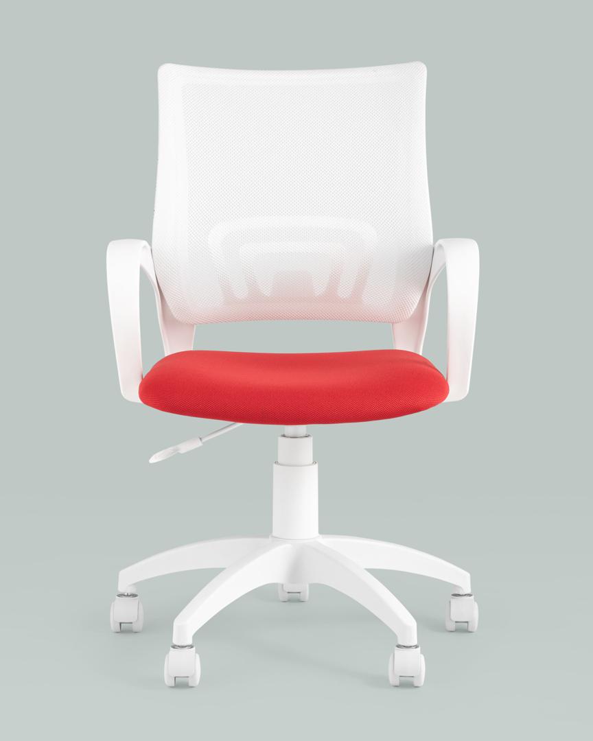 Офисное кресло Stool Group Кресло офисное Topchairs ST-BASIC-W спинка белая сетка сиденье красная ткань крестовина белый пластик арт. УТ000036063