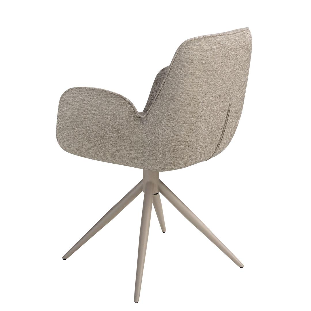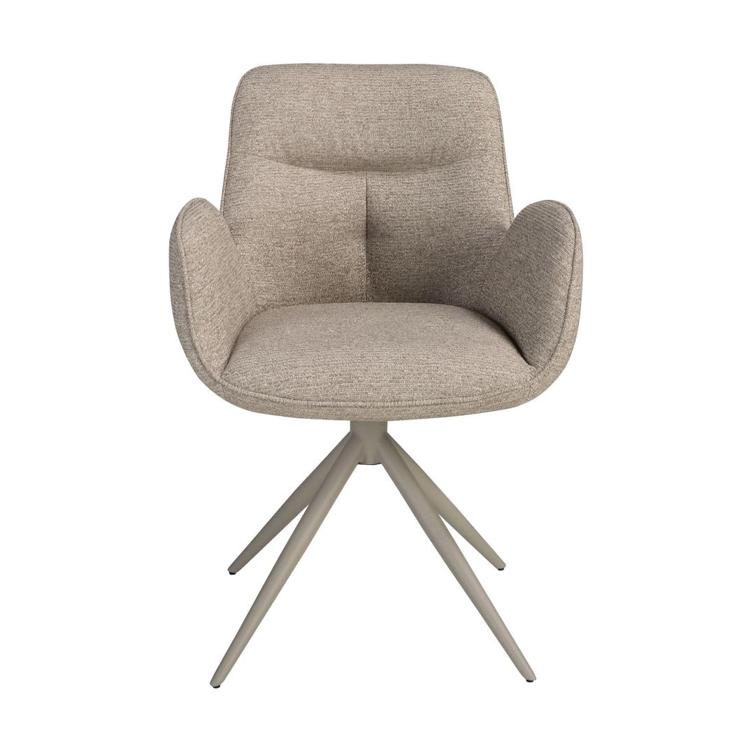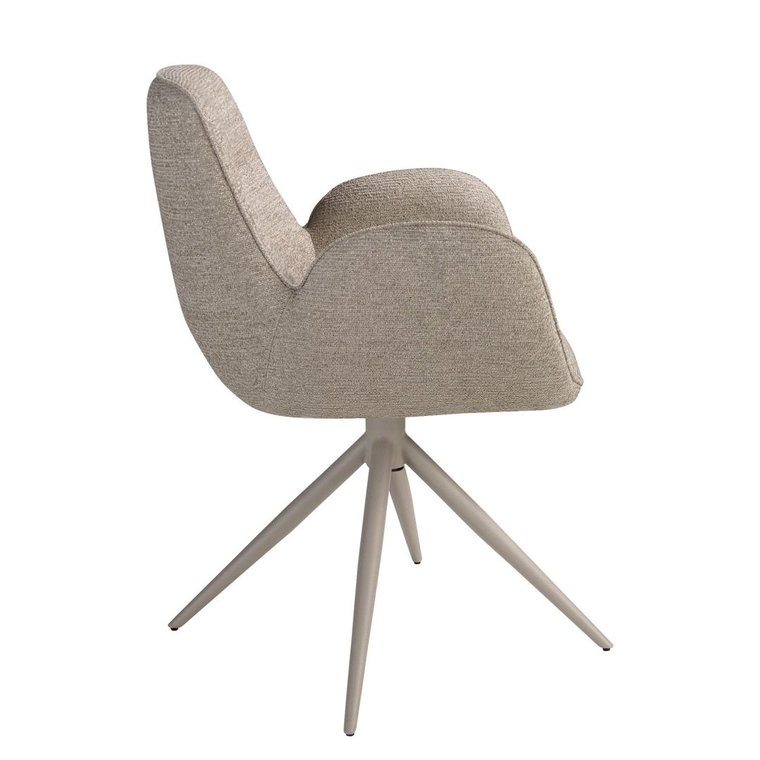 Современный поворотный стул с подлокотниками, сиденьем и спинкой, обитыми бежевой тканью. Ножки из нержавеющей стали песочного цвета, сочетающие в себе авангардный и вневременной стиль, сделают его незаменимым элементом вашей кухни или столовой. Этот стул от Angel Cerdá сочетает в себе уникальный и индивидуальный стиль бренда с максимальным комфортом и устойчивостью благодаря высокому качеству обивки и оригинальной конструкции ножек.