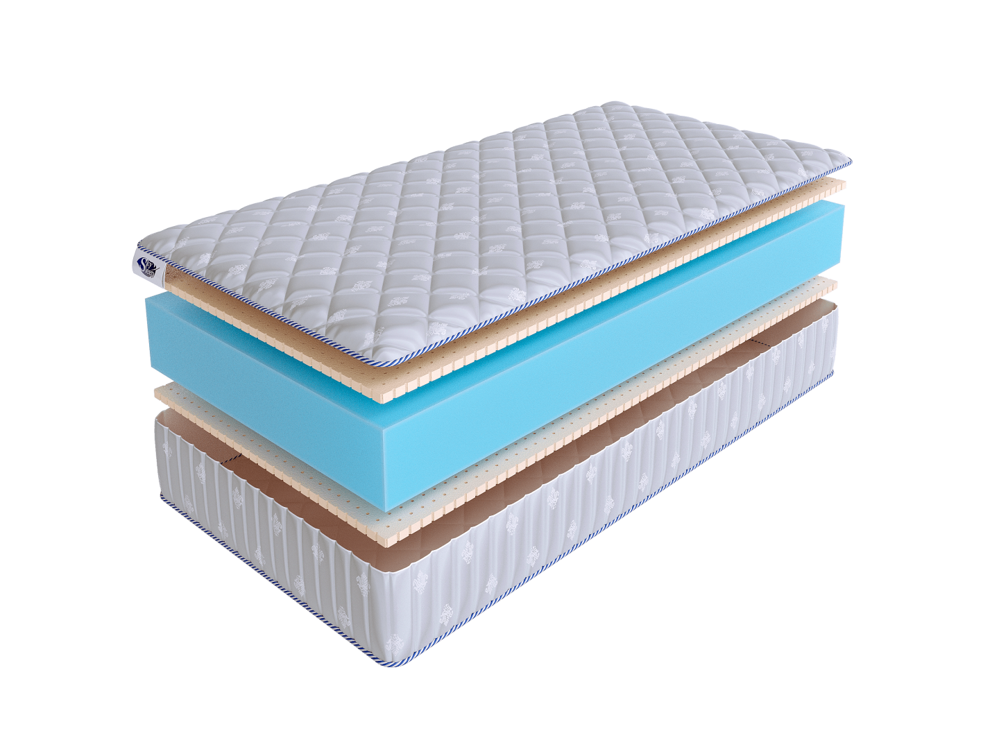 Чехол матраса изготовлен из синтетического жаккарда со стежкой на гипоаллергенном волокне.