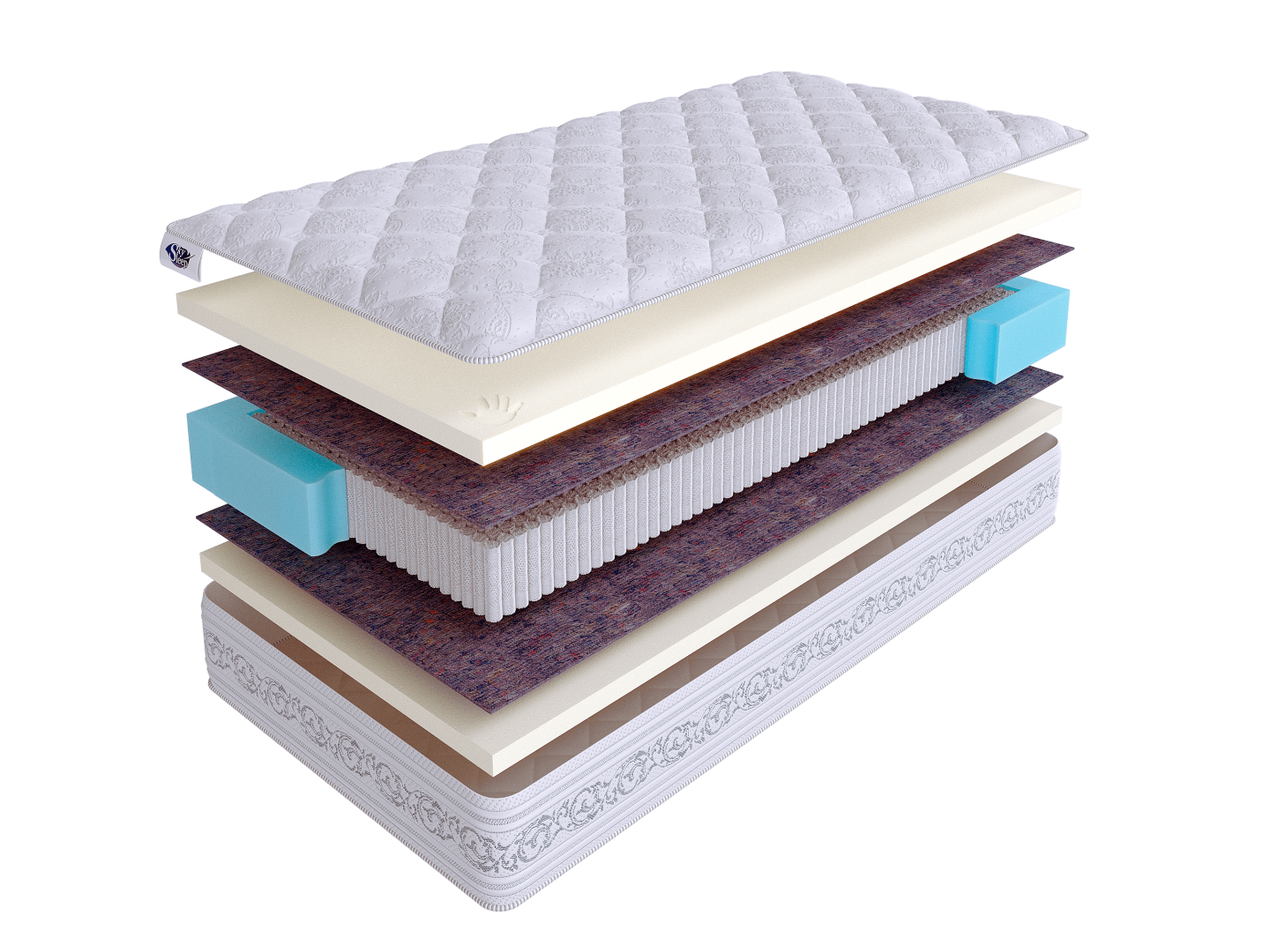 В основе матраса лежит высокотехнологичный блок независимых пружин S2000. Особенностью данного блока является то, что каждая пружина размещается в отдельном чехле из прочного воздухопроницаемого материала. Это позволяет пружинам самостоятельно реагировать на вес тела человека и обеспечивать ортопедическую поддержку позвоночника.