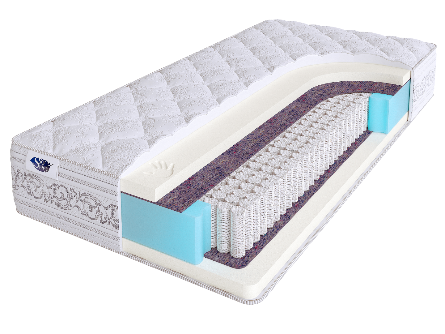 В основе матраса лежит высокотехнологичный блок независимых пружин S1000. Особенностью данного блока является то, что каждая пружина размещается в отдельном чехле из прочного воздухопроницаемого материала. Это позволяет пружинам самостоятельно реагировать на вес тела человека и обеспечивать ортопедическую поддержку позвоночника.