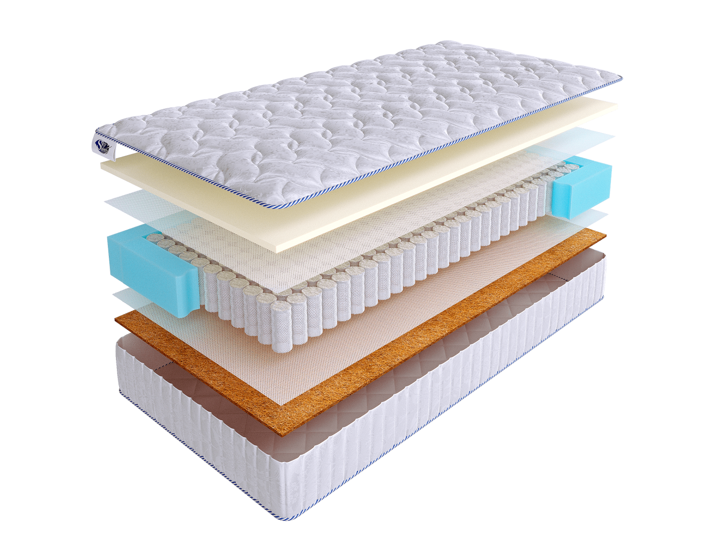 В основе модели лежит пружинный блок Pocket. Независимые пружины отлично подстраиваются под контуры тела спящего и обеспечивают точечную поддержку позвоночника.