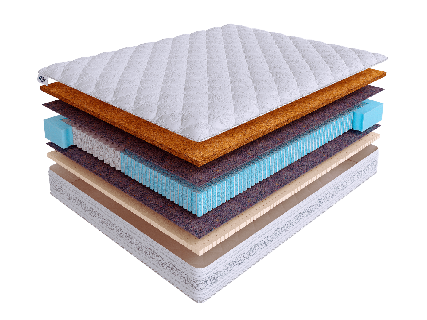Основными наполнителями модели являются натуральный латекс и латексированная кокосовая койра. Латекс придает поверхности матраса мягкость и делает сон на нем комфортным и удобным, а кокосовая койра, расположенная на одной из сторон, способствует созданию упругой поддержки позвоночника и равномерному распределению нагрузки на пружинный блок.
