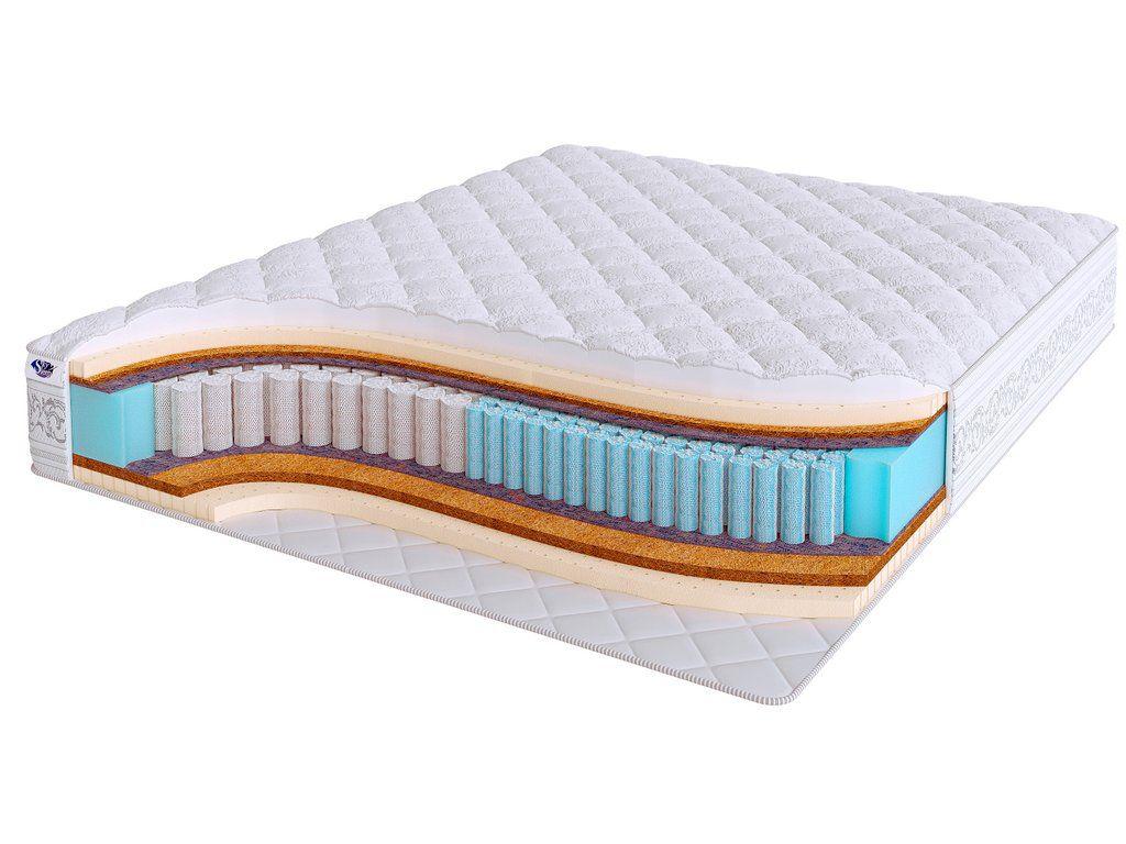 Основными наполнителями модели являются натуральный латекс и латексированная кокосовая койра. Латекс придает поверхности матраса мягкость и делает сон на нем комфортным и удобным, а кокосовая койра, расположенная на одной из сторон, способствует созданию упругой поддержки позвоночника и равномерному распределению нагрузки на пружинный блок.
