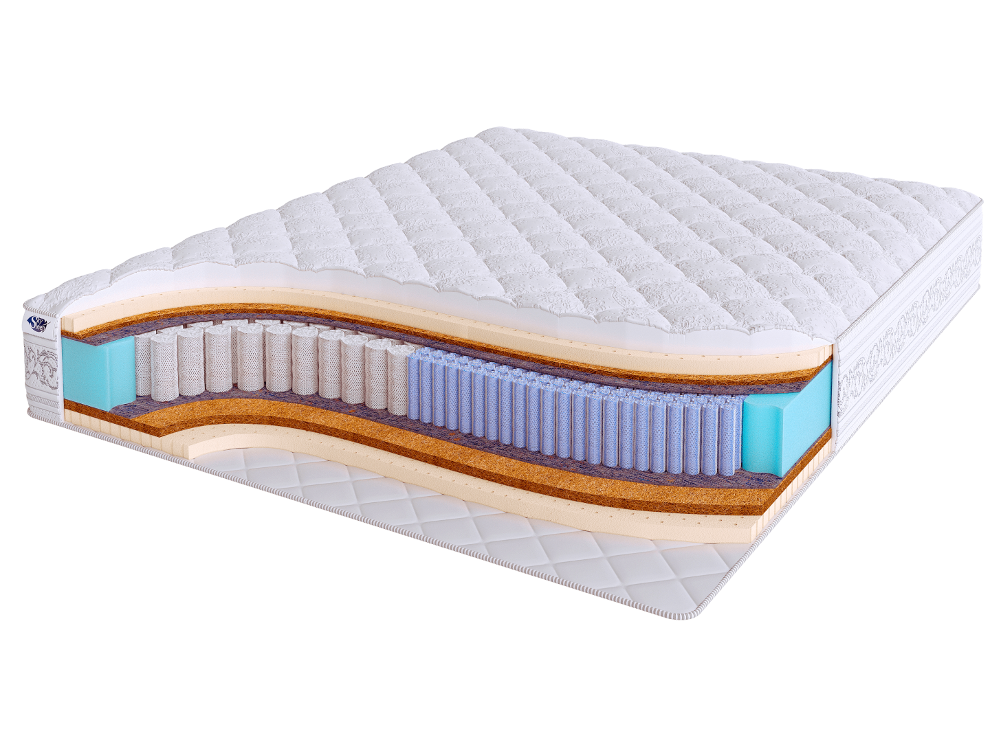 Основными наполнителями модели являются натуральный латекс и латексированная кокосовая койра. Латекс придает поверхности матраса мягкость и делает сон на нем комфортным и удобным, а кокосовая койра, расположенная на одной из сторон, способствует созданию упругой поддержки позвоночника и равномерному распределению нагрузки на пружинный блок.