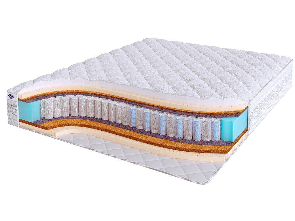 Основными наполнителями модели являются натуральный латекс и латексированная кокосовая койра. Латекс придает поверхности матраса мягкость и делает сон на нем комфортным и удобным, а кокосовая койра, расположенная на одной из сторон, способствует созданию упругой поддержки позвоночника и равномерному распределению нагрузки на пружинный блок.