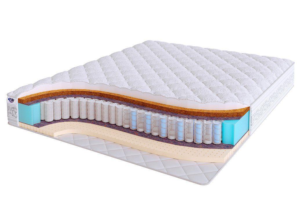 Основными наполнителями модели являются натуральный латекс и латексированная кокосовая койра. Латекс придает поверхности матраса мягкость и делает сон на нем комфортным и удобным, а кокосовая койра, расположенная на одной из сторон, способствует созданию упругой поддержки позвоночника и равномерному распределению нагрузки на пружинный блок.