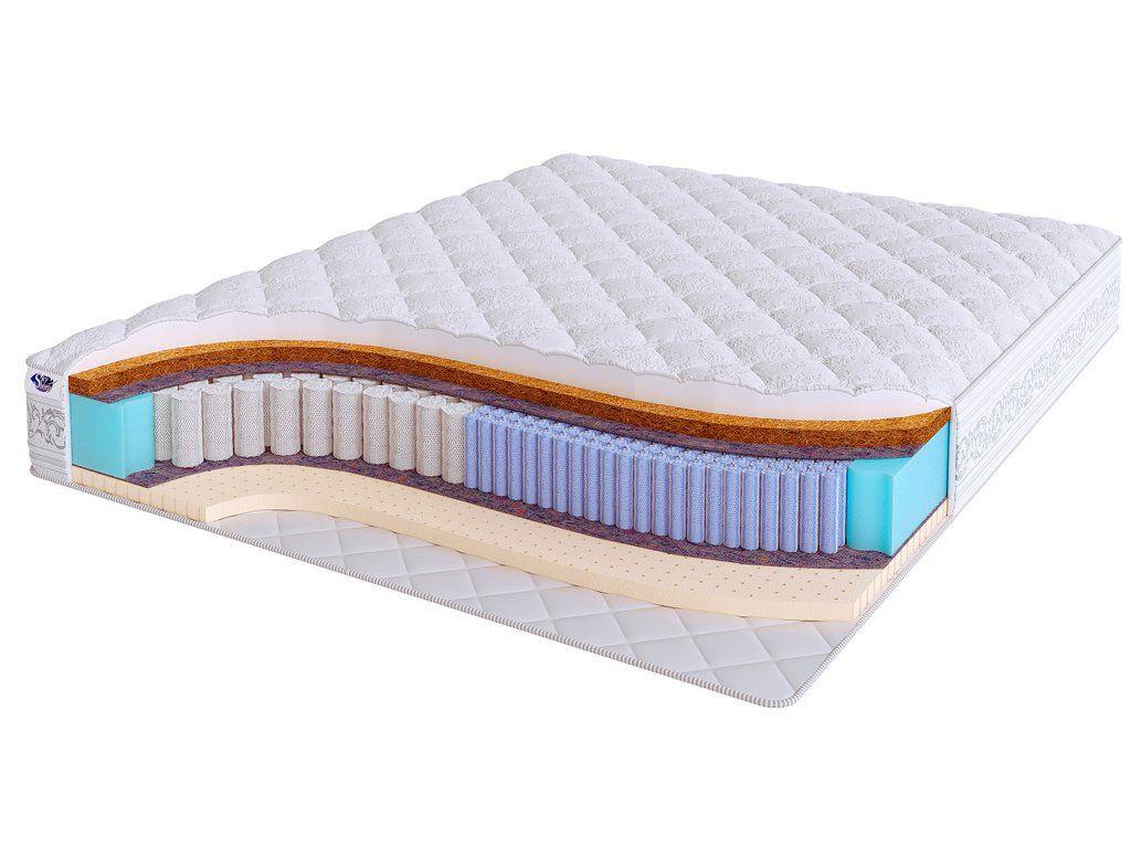 Основными наполнителями модели являются натуральный латекс и латексированная кокосовая койра. Латекс придает поверхности матраса мягкость и делает сон на нем комфортным и удобным, а кокосовая койра, расположенная на одной из сторон, способствует созданию упругой поддержки позвоночника и равномерному распределению нагрузки на пружинный блок.