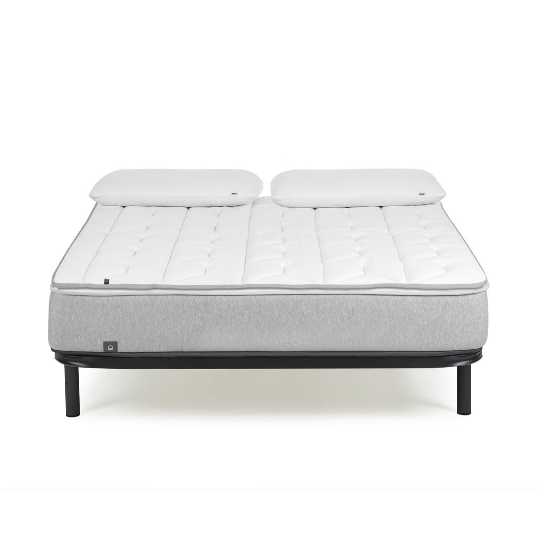 Основание кровати с металлической структурой графитового цвета и деревянными планками с эффектом углеродного волокна. Противошумные полиэтиленовые стыки. Включает соединительные пластины, совместимые с ножками X или S (не включены). Для матраса 135x190 см. Используйте 6 ног.