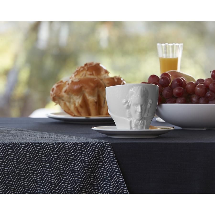 Чайная пара бренда Tassen из коллекции Talent станет центральной частью сервировки и превосходным подарком. Чашка украшена объемным изображением композитора Вольфганга Амадея Моцарта. Набор состоит из чашки и блюдца. Изделия выполнены из прочного высококачественного фарфора и покрыты эмалью. Диаметр блюдца: 15 см. Поставляется в красивой подарочной упаковке. Можно мыть в посудомоечной машине и ставить в микроволновую печь.