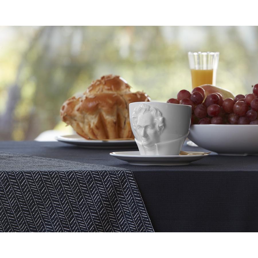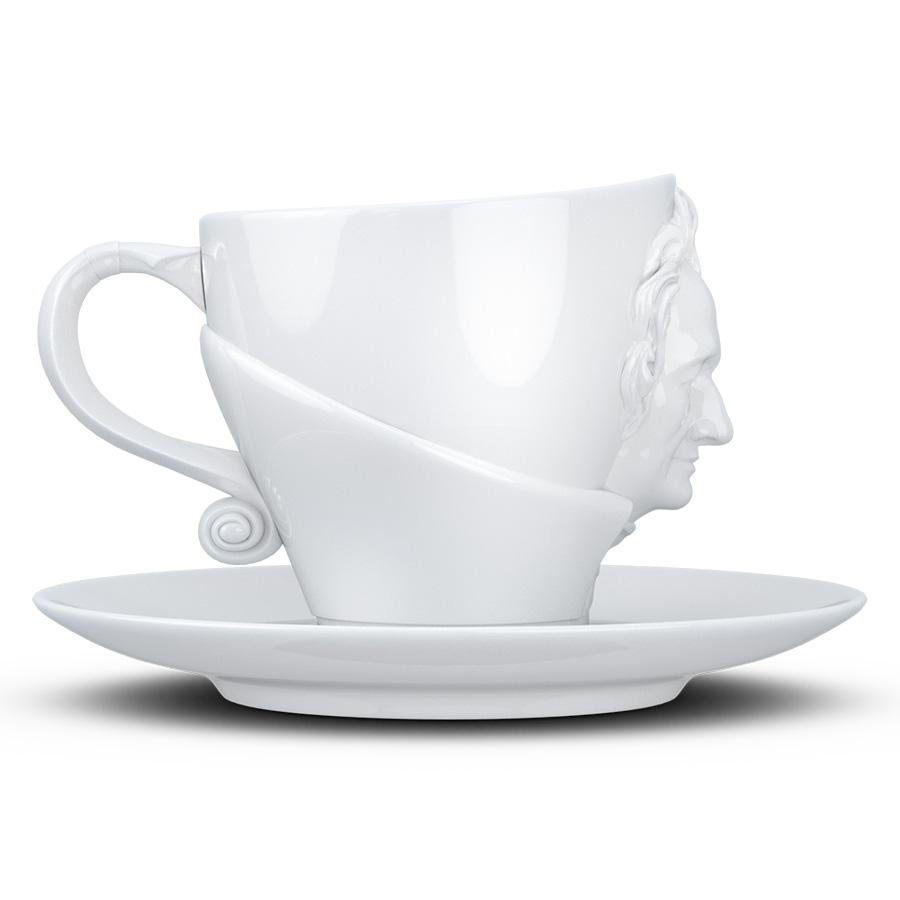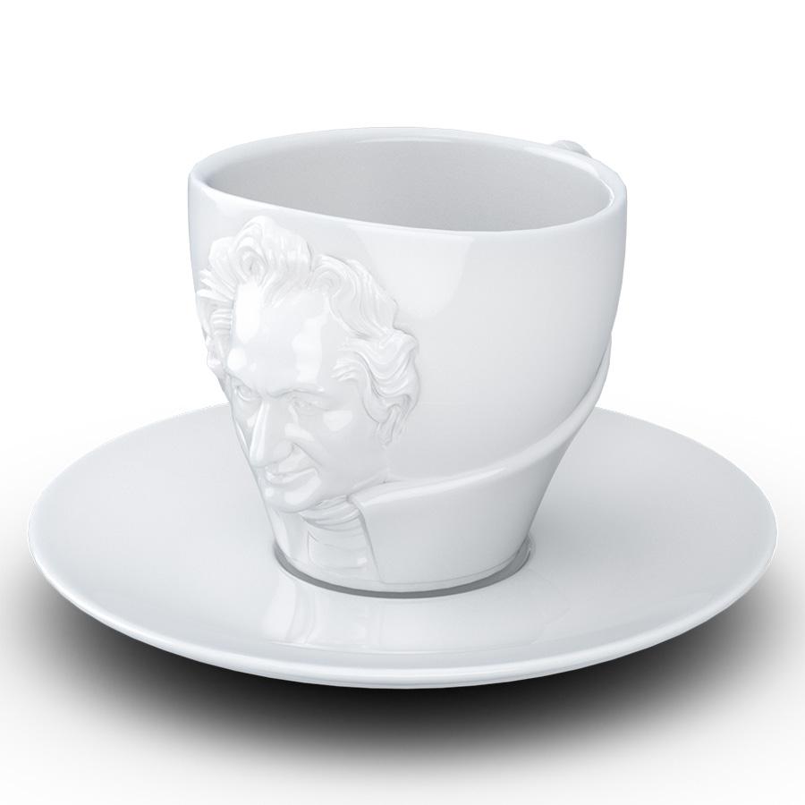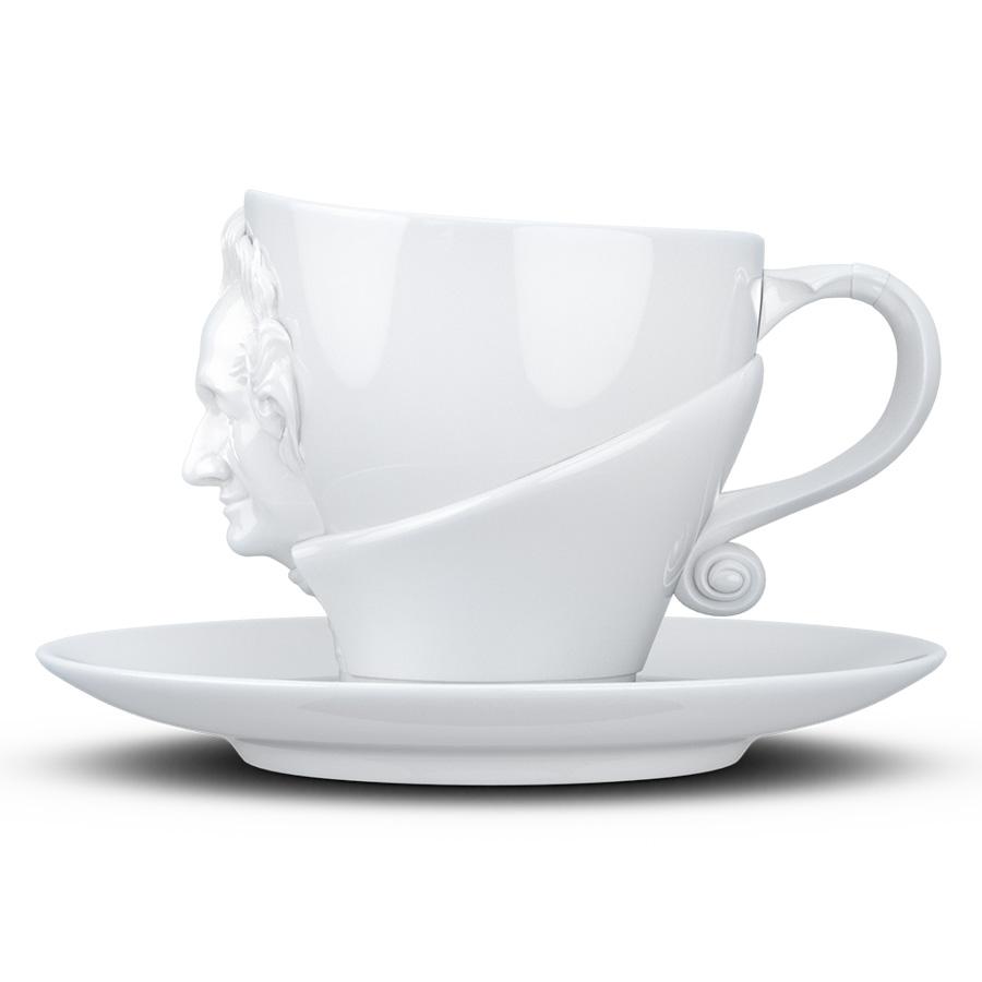 Чайная пара бренда Tassen из коллекции Talent станет центральной частью сервировки и превосходным подарком. Чашка украшена объемным изображением писателя Иоганна Вольфганга фон Гете. Набор состоит из чашки и блюдца. Изделия выполнены из прочного высококачественного фарфора и покрыты эмалью. Диаметр блюдца: 15 см. Поставляется в красивой подарочной упаковке. Можно мыть в посудомоечной машине и ставить в микроволновую печь.