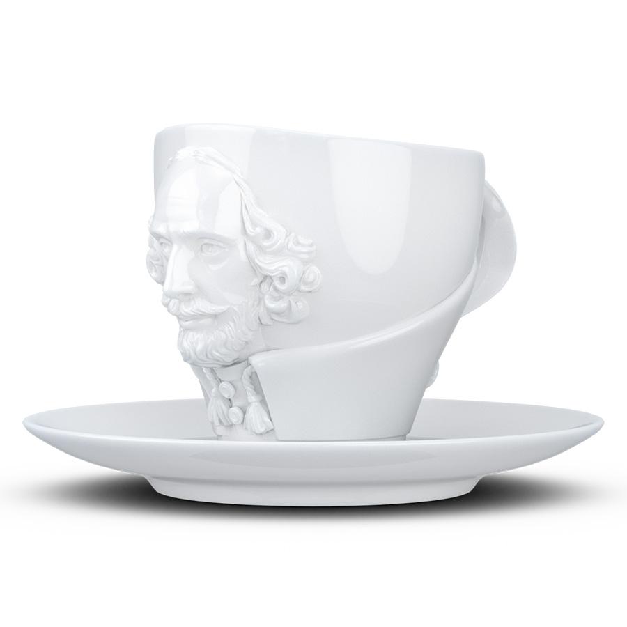 Чайная пара бренда Tassen из коллекции Talent станет центральной частью сервировки и превосходным подарком. Чашка украшена объемным изображением поэта Уильяма Шекспира. Набор состоит из чашки и блюдца. Изделия выполнены из прочного высококачественного фарфора и покрыты эмалью. Диаметр блюдца: 15 см. Поставляется в красивой подарочной упаковке. Можно мыть в посудомоечной машине и ставить в микроволновую печь.
