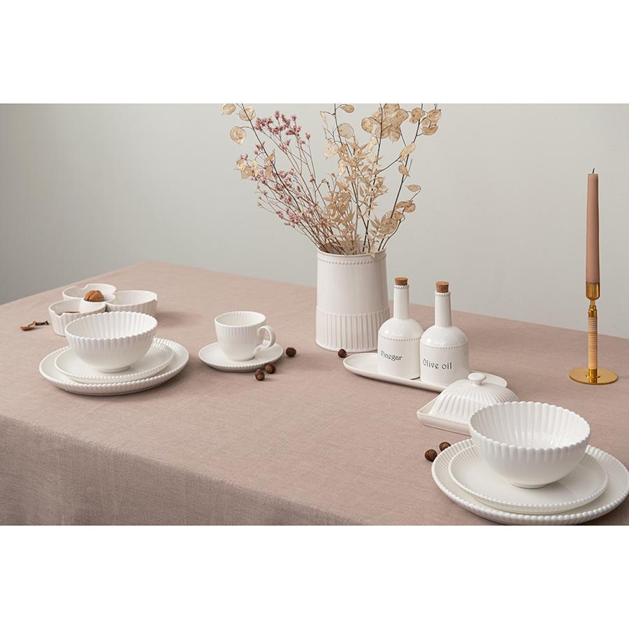Набор из двух чайных пар белого цвета из коллекции Kitchen Spirit, выполненный в стиле рустик, – неотъемлемый атрибут уютного чаепития. Фактурный декор в сочетании с глянцевой глазурью станут изюминкой сервировки и помогут создать теплую атмосферу за столом. Чашки и блюдца из экологичного и практичного фарфора отличаются прочностью, не выделяют вредных веществ при нагревании, легко очищаются от загрязнений в теплой мыльной воде. Все предметы из коллекции Kitchen Spirit отлично комбинируются между собой. Отличительной особенностью линейки является покрытие из реактивной глазури, которое создает на поверхности посуды уникальные узоры. Во время обжига фарфора возникает химическая реакция, обычно плавление или окисление, в результате которой и получается нужный рисунок. Благодаря такой обработке найти два идентичных изделия практически невозможно. Именно за счет своей индивидуальности и неповторимости узора столовая посуда и аксессуары для сервировки с реактивной глазурью стали трендом в мире дизайна и декора. ! Важно, что возможное неравномерное окрашивание, “подтеки” или “наплывы” глазури не являются браком. Объем: 275 мл. Материал: фарфор. ! Можно использовать в микроволновой печи ! Можно мыть в посудомоечной машине ! Можно использовать в духовке при температуре не более 200° C ! Можно замораживать