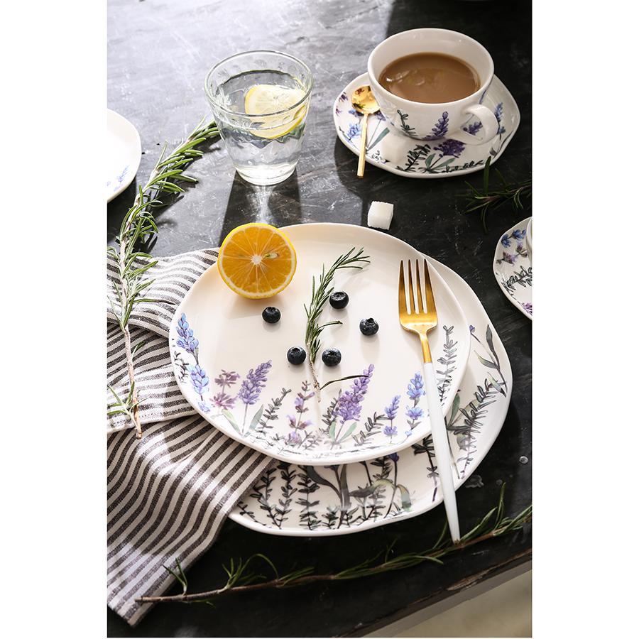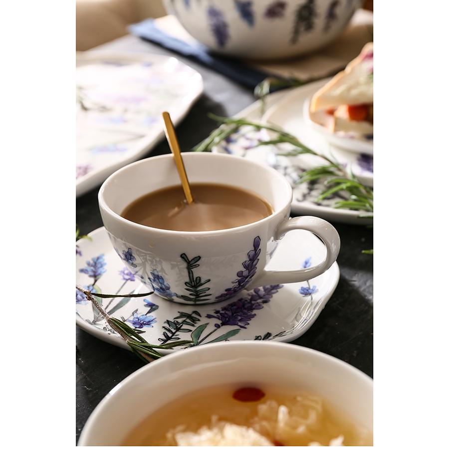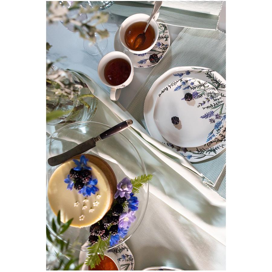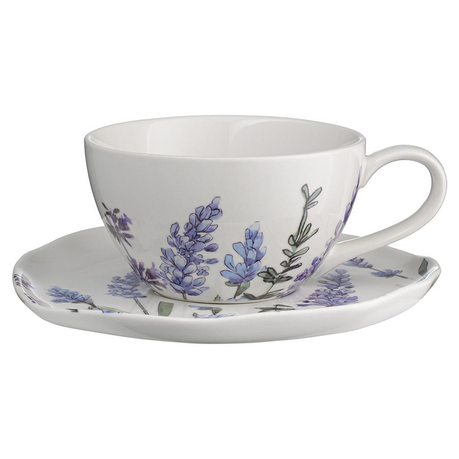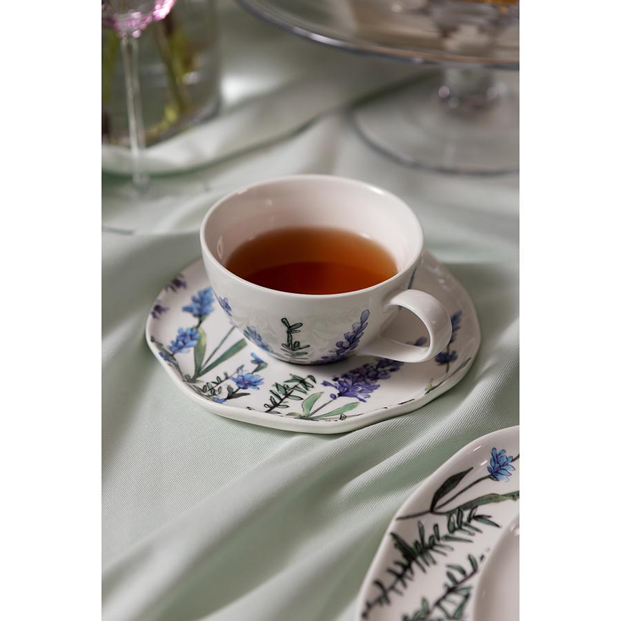 Чашки с блюдцами из коллекции Floral – прекрасный вариант для всех, кто ценит сочетание качества и эстетики. Цветущая лаванда, изображенная на белоснежной поверхности, превращает посуду в настоящее украшение стола. Такая чайная пара идеально подходит для уютных чаепитий в стиле кантри и прованс. Материал изготовления неприхотлив в уходе, не впитывает загрязнения, является экологичным и безопасным для здоровья. Чистое сырье высочайшего качества и собственная формула глазуровки с обжигом при температуре 1250 °C делают изделия из фарфора особо прочными, устойчивыми к растрескиванию и появлению сколов. Глазурь и декор не тускнеют со временем, сохраняя первоначальный цвет и блеск. Наши продукты прошли испытания на отсутствие в составе свинца и кадмия в соответствии со стандартными тестами FDA. Материал: фарфор. Объем чашки: 250 мл. Диаметр блюдца: 16 см. Количество предметов в наборе: 4 шт. Посуду рекомендуется очищать от загрязнений в теплой воде с помощью мягкой губки с жидким средством. Допускается мытье в посудомоечной машине, использование в морозильной камере, микроволновой печи и духовке при температуре не выше 180 °C.