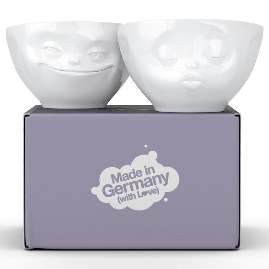 Оригинальные чаши с забавными рожицами отлично подойдут для подачи закусок, супов, десертов. Чаши выполнены из высококачественного фарфора. Поставляются в красивой подарочной коробке. Размеры одной чаши: 7х11,6х12 см Диаметр: 11,6 см Можно мыть в посудомоечной машине и ставить в микроволновую печь.
