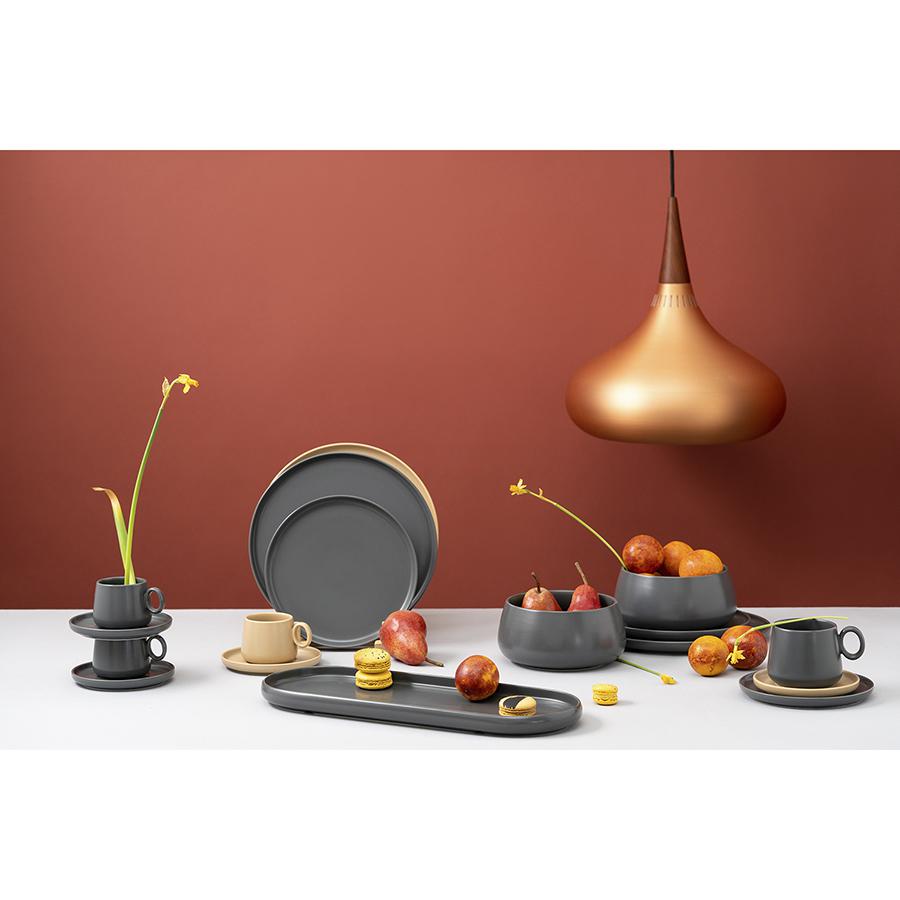 Набор из двух фарфоровых чайных пар глубокого серого цвета подойдет как для праздничной сервировки, так и для ежедневного чаепития. Сдержанный скандинавский дизайн чашек и блюдец станет украшением вашей кухни, а необычная форма будет радовать каждый день. Гладкая фарфоровая поверхность с приятным, чуть приглушенным глянцем благородно выглядит и вместе с тем очень практична — не царапается и легко отмывается от загрязнений. Чайные пары можно дополнить другими предметами из серии Essential — например, тарелками, блюдами и салатниками. Размеры чашки: 9х11,5х7,5 см. Размеры блюдца: 16х16х1,5 см. Объем: 250 мл. Материал: фарфор. • Можно использовать в микроволновой печи • Можно мыть в посудомоечной машине • Можно использовать в духовке при температуре не более 180° C • Можно замораживать