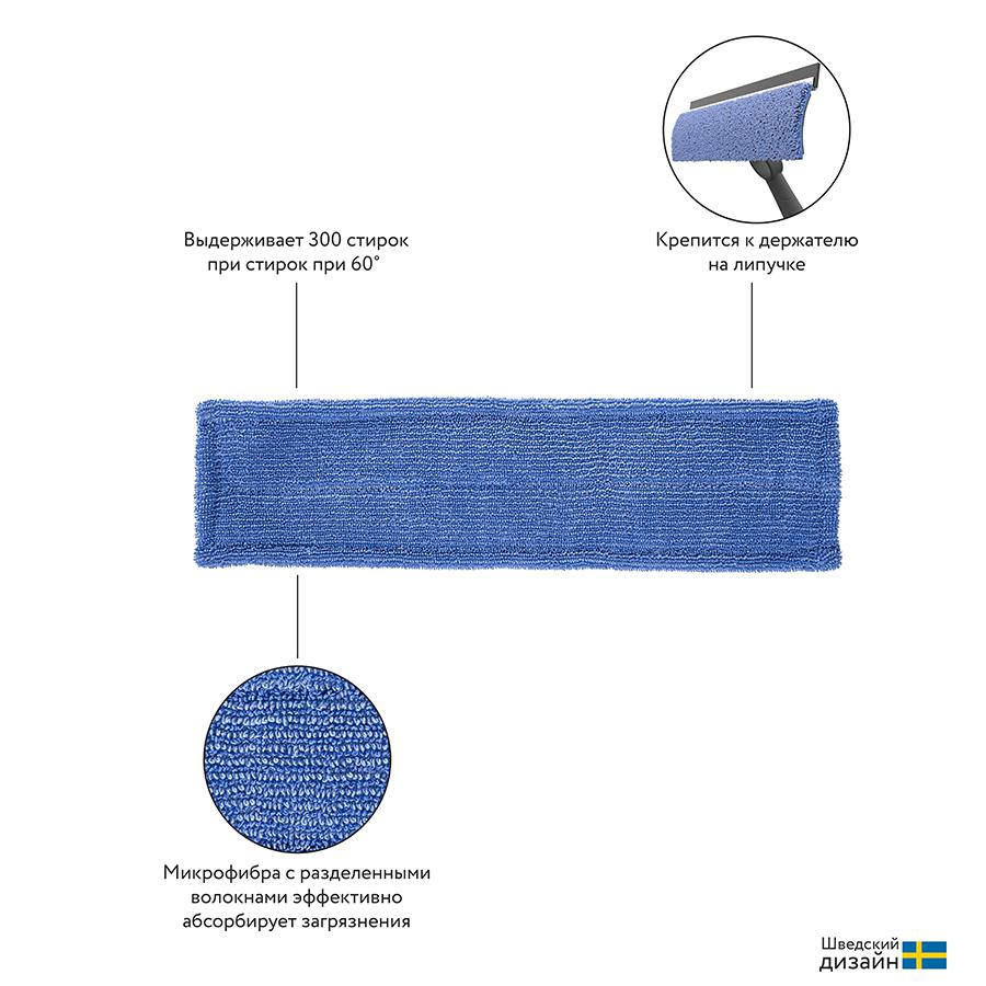 Сменная насадка из микрофибры эффективно впитывает влагу, удаляет пыль и грязь со стеклянных и зеркальных поверхностей. Микрофибра состоит на 88% из полиэстера и 12% из полиамида. Она отлично обеспечивает глянцевый блеск поверхности, не оставляя разводов и мелких ворсинок. Насадка из микрофибры выдерживает до 300 стирок при температуре до 60?.