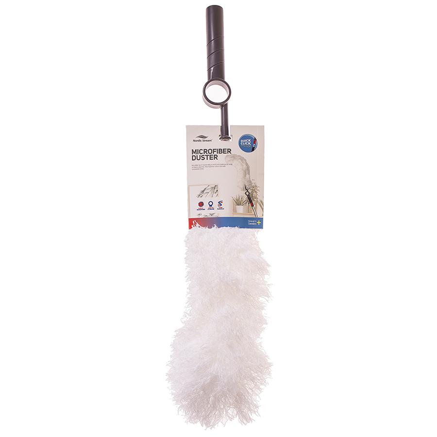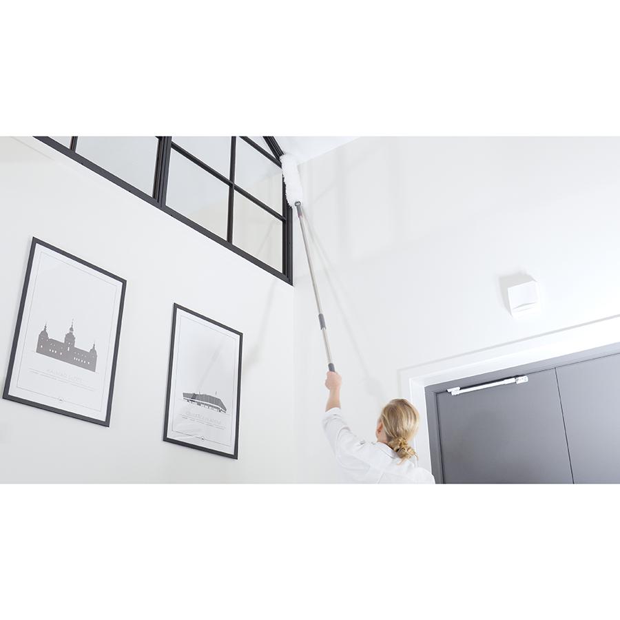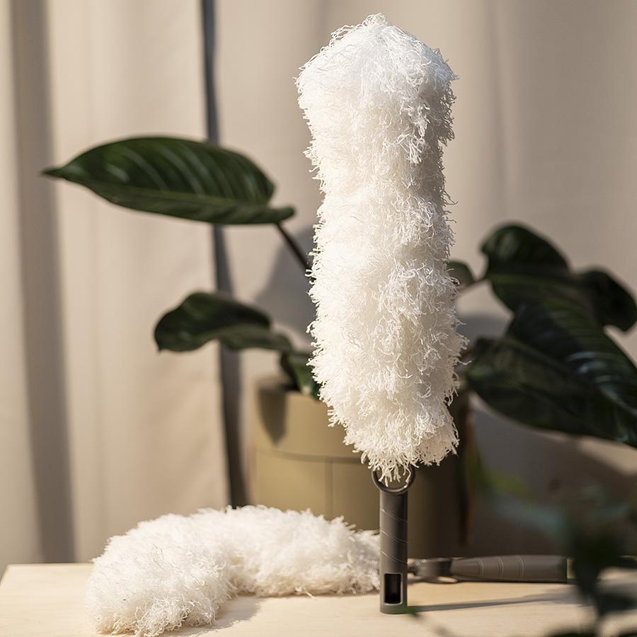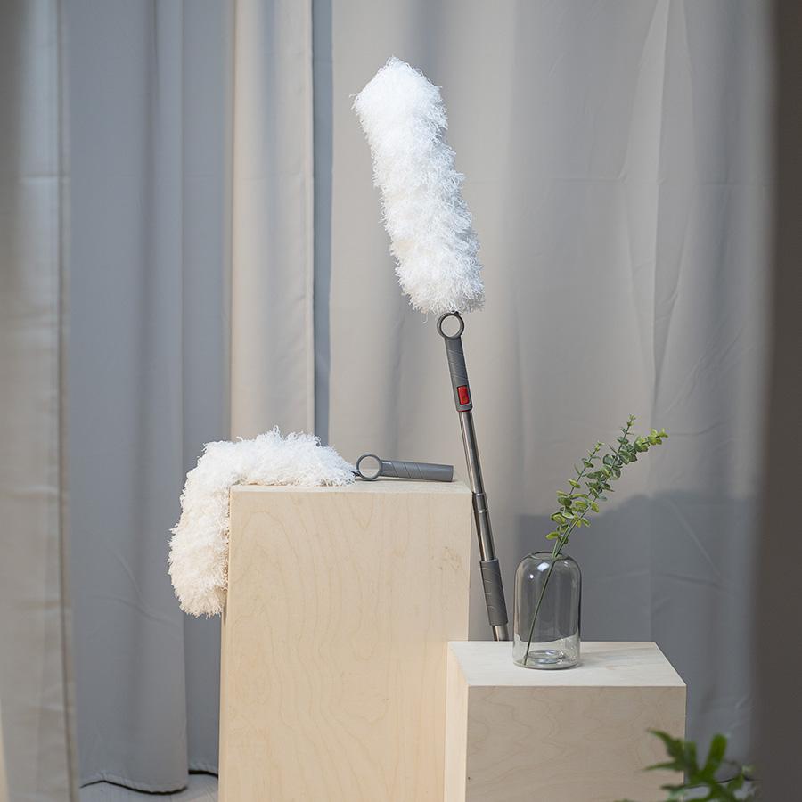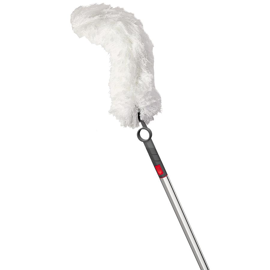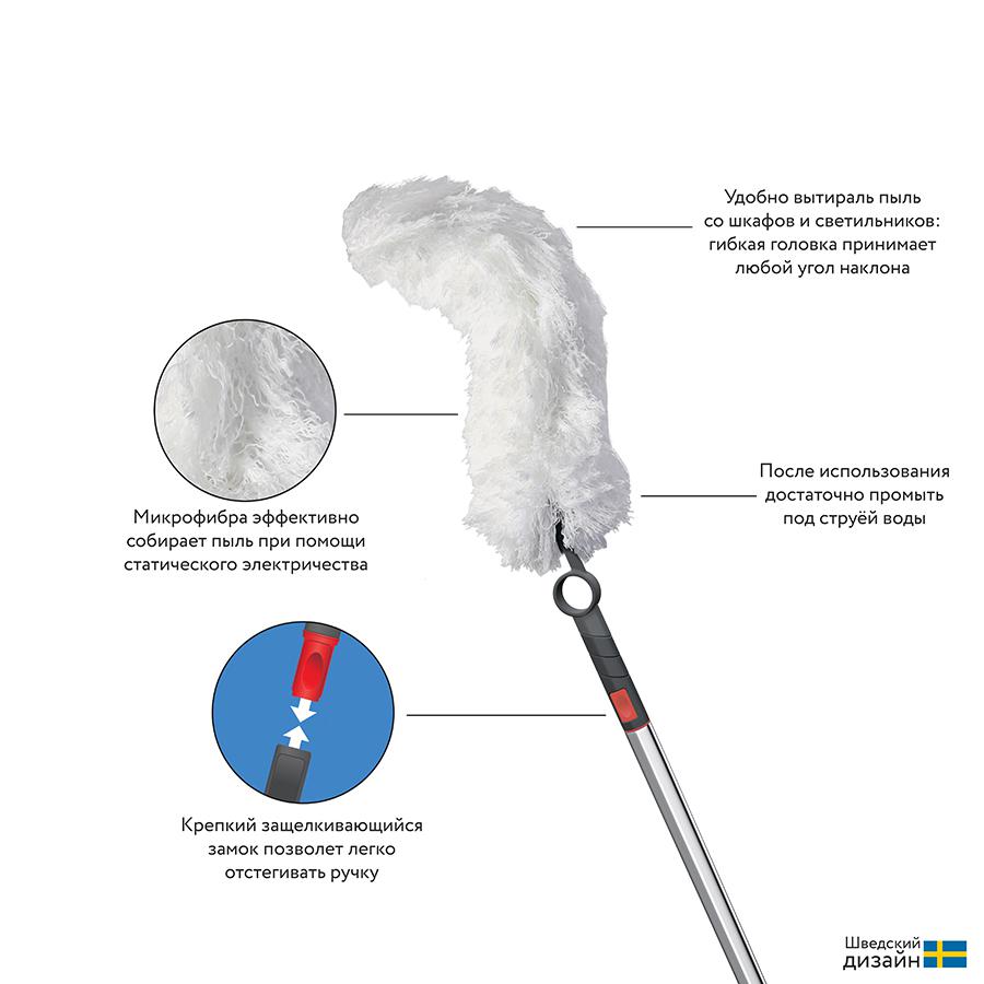 Гибкая метелка для пыли с насадкой из микрофибры c разделенными волокнами станет отличным помощником в уборке. Она дополнена гибкой головкой, которая может принимать любой угол наклона для эффективной очистки поверхностей. Собранная пыль притягивается электростатической силой и впитывается в микрофибру, не поднимаясь в воздух. Для уборки в труднодоступных зонах можно воспользоваться телескопической ручкой, которая приобретается отдельно.