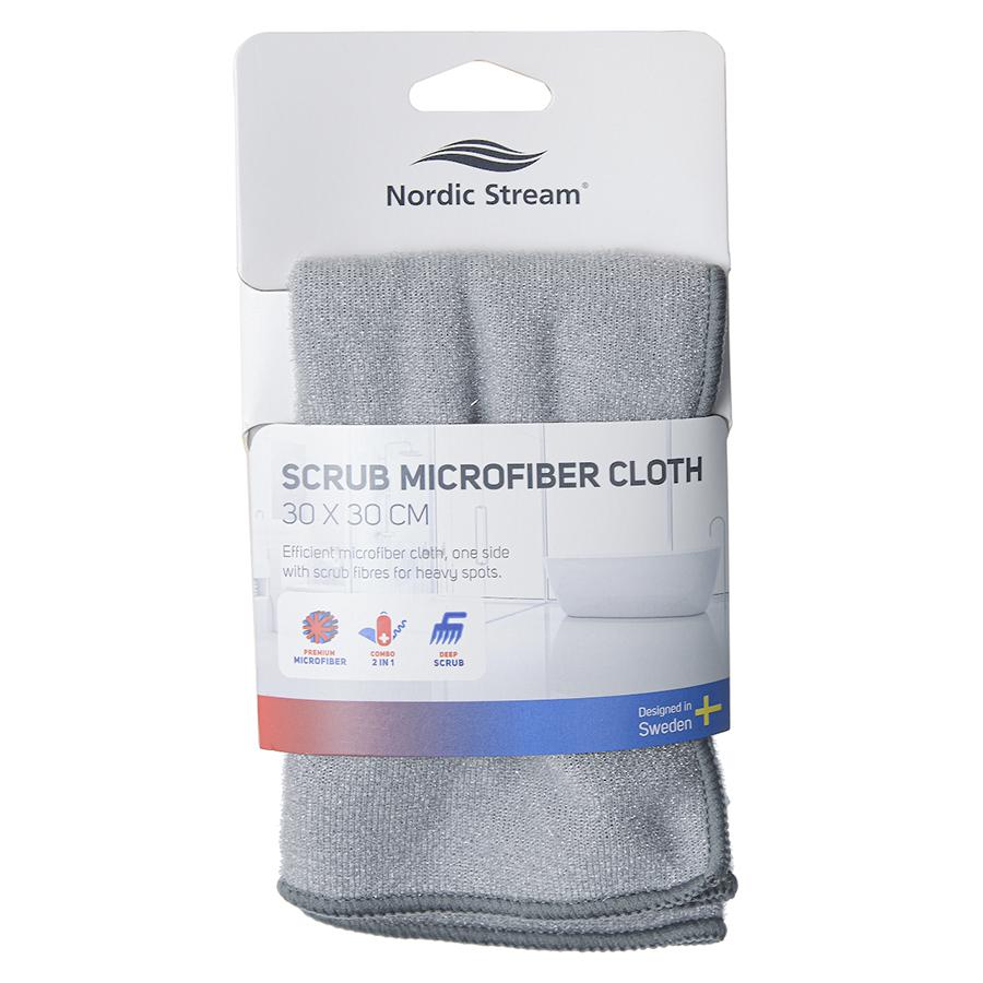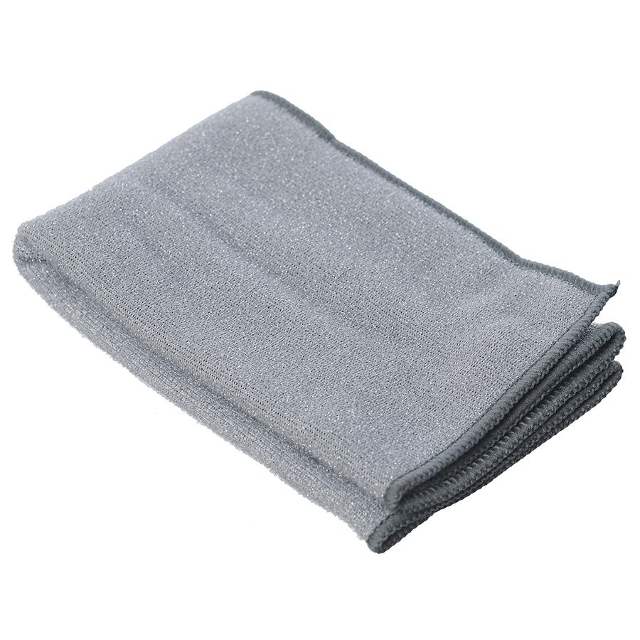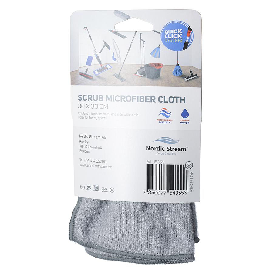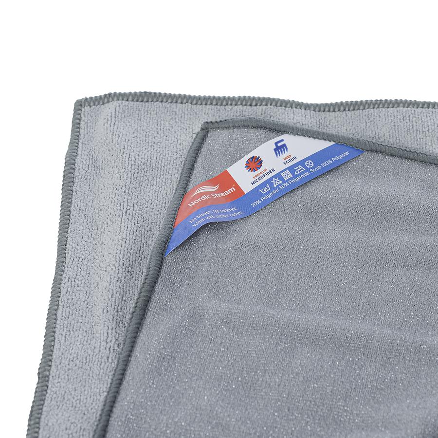 Двусторонняя тряпка выполнена из мягкой микрофибры с добавлением абразивных волокон. Она эффективно удаляет загрязнения, поглощает пыль и полирует любые виды поверхностей, не оставляя разводов. Она предназначена для мытья холодильника, плиты, вытяжки, столов, шкафов и раковины. Тряпка выдерживает до 300 стирок при температуре до 60?. Она легко отжимается и быстро сохнет. Материал: микрофибра — 70% полиэстер 30% полиамид, скраб – 100% полиэстер Размер: 30х30 см