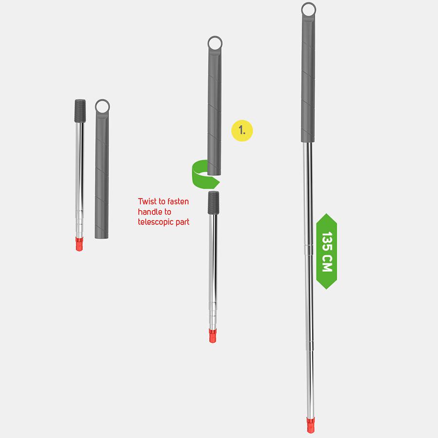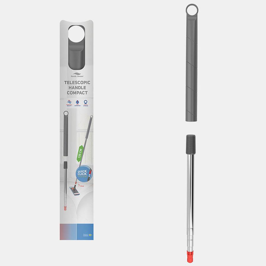 Компактная ручка для швабры облегчит уборку в труднодоступных местах. Ручка раздвигается до 135 см. Она выполнена из прочной нержавеющей стали, устойчивой к механическим воздействиям и коррозии. В тандеме с насадкой из микрофибры бренда Nordic Stream ручка эффективно справится с любыми загрязнениями даже в труднодоступных местах. Аксессуар снабжен удобным механизмом, который фиксирует две его части в раздвижном положении, препятствуя самопроизвольному сложению. Также ручка дополнена пластиковым колпачком с кольцом для подвешивания.