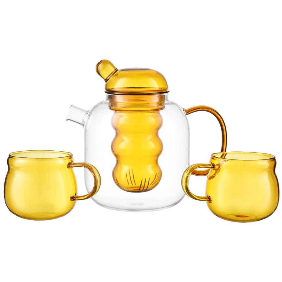 Остальные предметы ЯЯЯ Чайник стеклянный с двумя чашками, 1,2 л, желтый арт. KW-SS-TPCP-GLS-YL-1200