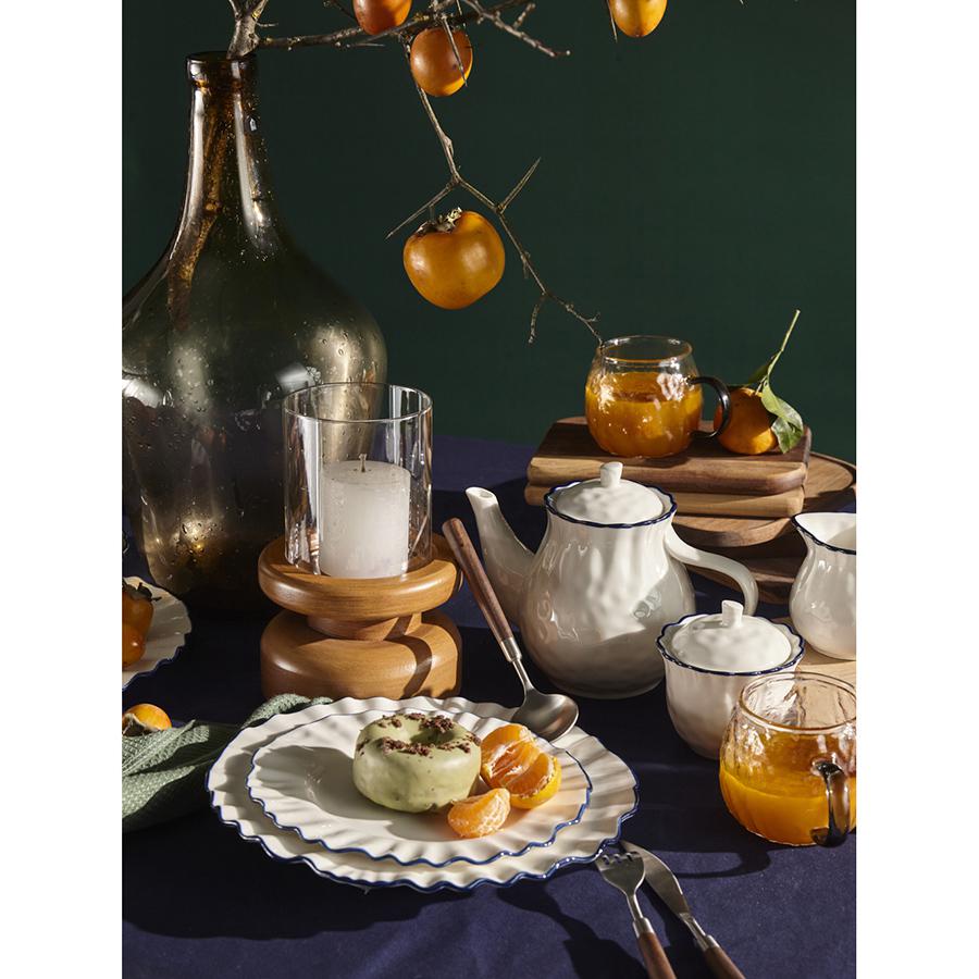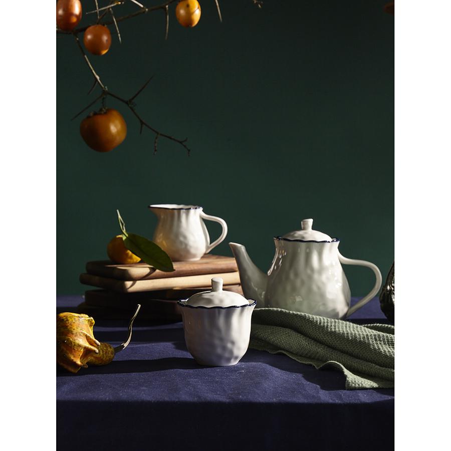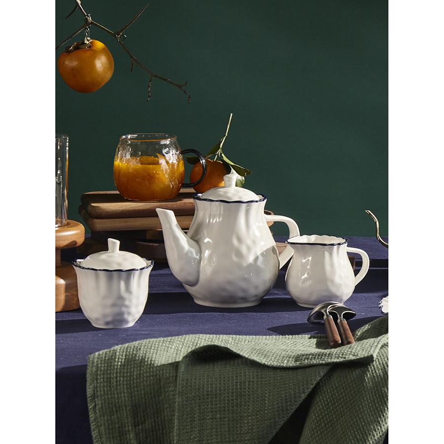 Чайник заварочный из коллекции Santorini от бренда Liberty Jones воплощает в себе элегантность посуды из фарфора, привлекая необычным дизайном с контрастными акцентами. Особенности и преимущества: - Фарфор является прочным, устойчивым к износу материалом, который сохраняет презентабельный вид долгие годы. - Чайник имеет удобный объем 875 мл, позволяющий за один раз заварить напиток для всей семьи. - Акцент в виде контрастной каймы и легкий рельеф делают дизайн интересным и запоминающимся. - Идеально гладкая поверхность и высокая сопротивляемость материала к химическим воздействиям обеспечивают простой уход. - Белая посуда отлично гармонирует с предметами сервировки любой цветовой гаммы. Коллекция Santorini великолепно передает атмосферу уединенного греческого острова, известного своими завораживающими видами и удивительной архитектурой. Оттенки белого и синего напоминают о бескрайнем море и уютных домиках на скалах, а необычная “мятая” фактура фарфора ассоциируется с каменистыми склонами и живописными утесами. Материал: фарфор. Размеры: 22х13х16 см. Объем: 875 мл. Можно мыть в посудомоечной машине, замораживать, использовать в микроволновой печи и духовке при температуре не более 180° C.