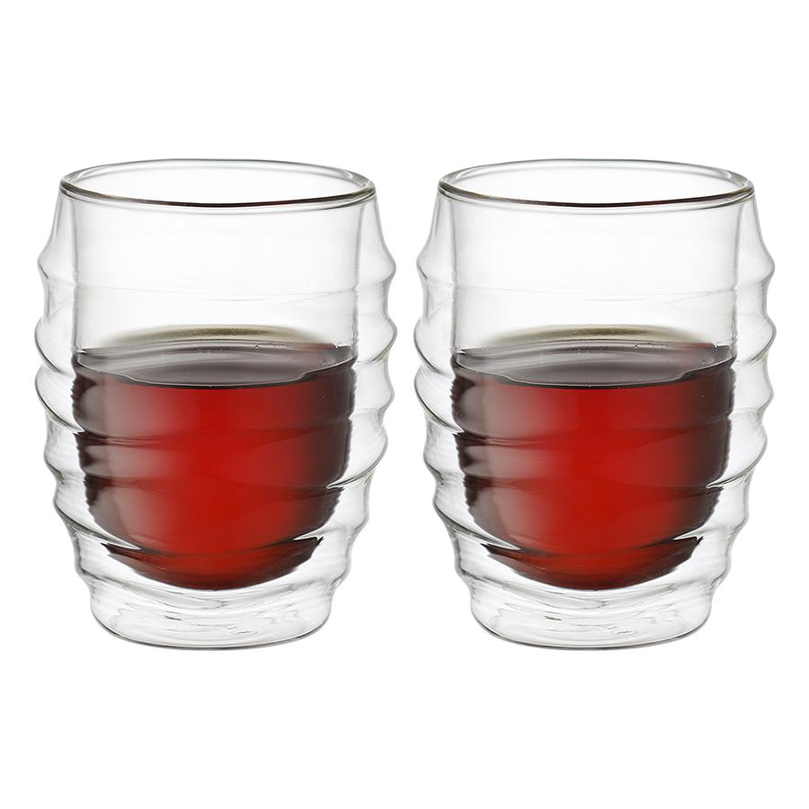 Стаканы с двойными стенками Serene от бренда Liberty Jones привлекают внимание необычным дизайном и идеально подходят как для холодных, так и для горячих напитков. Особенности и преимущества: - Для производства стаканов используется боросиликатное стекло самого высокого класса High-grade с повышенным содержанием оксида бора – оно менее подвержено царапинам, не тускнеет и не трескается от кипятка. - Сочетание гладкой внутренней и рельефной внешней поверхностей создает интересный контраст. - Уникальная конструкция с двойными стенками позволяет дольше сохранять оптимальную температуру напитка. - Внешняя стенка стакана остается относительно прохладной, даже если напиток внутри очень горячий, что предотвращает ожоги рук. - Между двумя стенками образуется воздушный слой, что обеспечивает красивый эффект "парящей" жидкости. - Стаканы легко моются, сохраняя свою прозрачность и первоначальный блеск. - Объемный волнистый узор эффектно выделяет линейку Serene среди других коллекций. Наши продукты прошли испытания на отсутствие в составе свинца в соответствии со стандартными тестами FDA. Материалы: боросиликатное стекло. Объем: 350 мл. Размеры: 8х8х11,2 см. Количество в наборе: 2 шт. Стаканы рекомендуется мыть вручную.