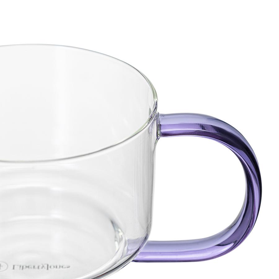 Набор кружек Orb – прекрасный способ сделать сервировку особенной. Дизайн с цветными акцентами привлекает внимание и эффектно выделяет предметы из данной коллекции на фоне других. Особенности и преимущества: - Боросиликатное стекло, из которого выполнены кружки, обладает повышенной прочностью и термостойкостью. - Материал легко очищается от загрязнений и не содержит в своем составе вредных соединений. - Акцент в виде цветных ручек делает дизайн уникальным и узнаваемым. Материал: боросиликатное стекло. Размеры: 13,8х9,8х7,7 см. Объем: 400 мл. Цвет: прозрачный/фиолетовый. Количество в наборе: 2 шт. Можно мыть в посудомоечной машине в деликатном режиме.Запрещается применение абразивных материалов и агрессивной бытовой химии. Не рекомендуется использование в микроволновой печи.