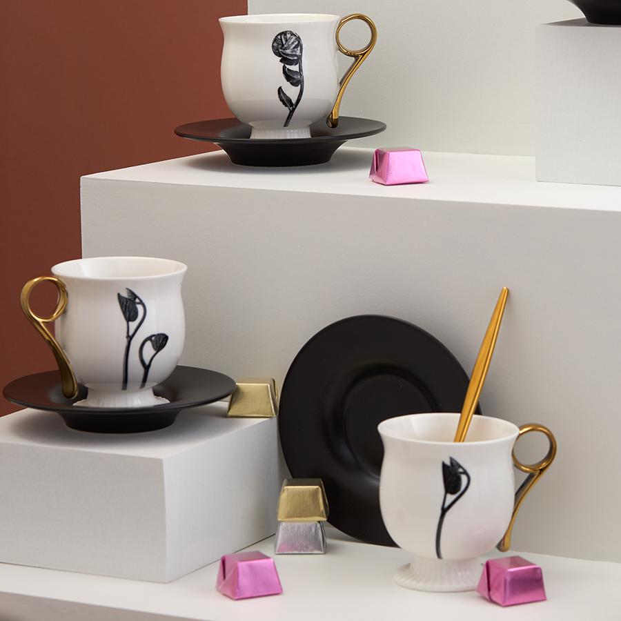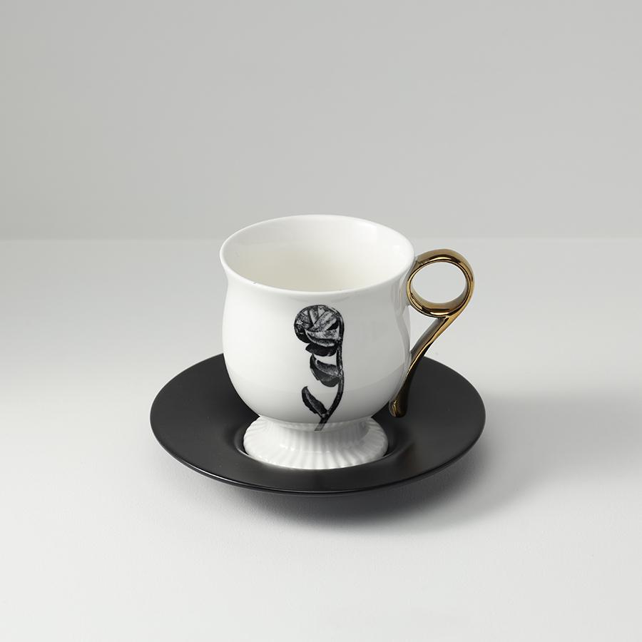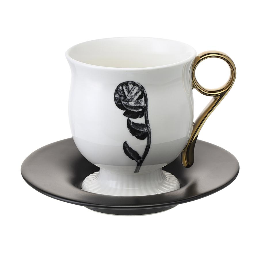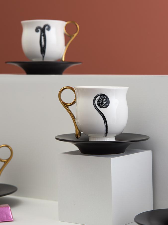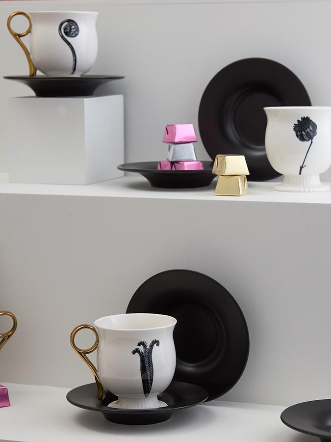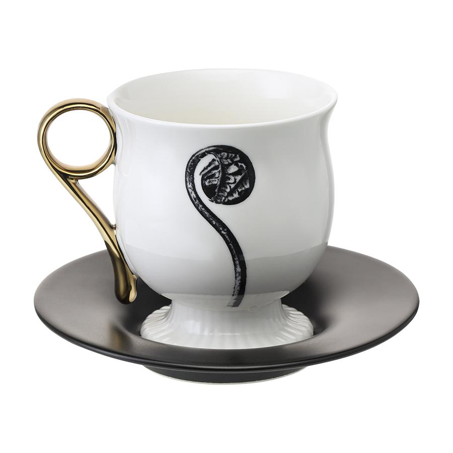 Коллекция Herbaria – союз наследия русского фарфорового завода Батенина и творчества немецкого фотографа-модерниста Карла Блоссфельдта. Батенинский фарфор отличался большим разнообразием форм и богатым декором – часто это были роскошные букеты на вызолоченных поверхностях. Взяв за основу классические формы, мы отошли от пышности оформления и сочетали их с лаконичными ботаническими мотивами. Herbaria – увлекательный диалог не только геометрии и природы, а также двух противоположных художественных стилей: русского ампира первой трети XIX века и немецкого модернизма начала XX. Особенности и преимущества: - Посуда из фарфора выглядит утонченно и изящно, при этом устойчива к износу, долговечна и не требует сложного ухода. - Белоснежная чашка в сочетании с черным блюдцем создают эффектный контраст, акцентируя внимание на стильной сервировке. Материал: фарфор. Объем чашки: 150 мл. Размеры чашки: 10,1х7,8х8,5 см. Размеры блюдца: 13,5х13,5х2,3 см. Цвет: черный/белый. Посуду рекомендуется мыть вручную. Запрещается использование абразивных материалов и агрессивной бытовой химии.