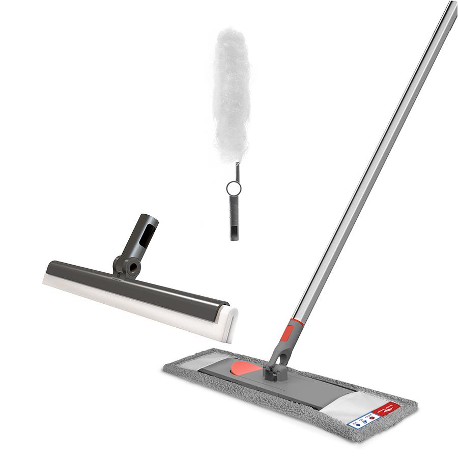 Набор Мультишвабра от бренда Nordic Stream, включающий в себя три основания для швабры, насадку и телескопическую ручку, поможет осуществить быструю и эффективную уборку, сбережет ваши силы и сэкономит время. Гибкая метелка для пыли с насадкой из микрофибры c разделенными волокнами притягивает пыль при помощи электростатической силы, собирает ее, не позволяя подниматься в воздух. Швабра-скребок с прочным пластиковым корпусом, в основе которого зафиксирован сквидж для воды, идеально подходит для уборки в ванной комнате, на кухне, на террасе или у бассейна. Она отлично удаляет воду и моющие средства даже в стыках напольных покрытий. Сменная насадка из жесткой микрофибры предназначена для интенсивной влажной уборки, эффективно справляется со сложными пятнами и твердой грязью, не царапая пол. Микрофибра подходит для всех типов напольных покрытий: кафеля, керамогранита, ламината, дерева и линолеума. Насадки надежно крепятся на флаундере, что препятствует их соскальзыванию в процессе уборки. Микрофибра выдерживает до 300 стирок при температуре до 60?. Съемное основание, изменяющее уровень наклона швабры, и телескопическая ручка облегчат уборку в труднодоступных местах. Ручка снабжена удобным механизмом, который фиксирует две его части в раздвижном положении, препятствуя самопроизвольному сложению. Аксессуар дополнен пластиковым колпачком с кольцом для подвешивания. В комплект входят 5 предметов: - основание с метелкой из микрофибры; - основание со скребком для пола; - насадка из жесткой микрофибры; - основание для швабры, 41 см; - телескопическая ручка, 135 см.