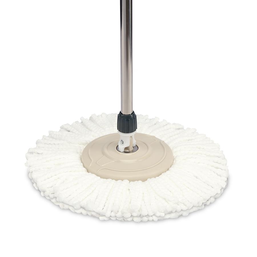 Швабра Cleanup сочетает в себе премиальное качество, эргономичный дизайн и передовые технологии, делая процесс уборки не только простым и эффективным, но и увлекательным. С центрифугой вы сможете быстро и удобно отжимать насадку до любого состояния, обеспечивая идеальную чистоту на различных поверхностях. Особенности и преимущества: - Телескопическая ручка из прочной и долговечной стали увеличенной толщины с мягкой накладкой для удобного использования. - Запатентованная система отжима, которая полностью контролирует поток воды – жидкость остается в емкости, а не разлетается по сторонам. - Ведро оптимального объема 7 л с отделением для полоскания и автоматической центрифугой. - Рабочая часть с углом вращения 360 градусов для эффективного удаления пыли и загрязнений под мебелью и в труднодоступных местах. - Насадка с двойным рядом мягкой, практичной микрофибры премиального качества, которая при замене не требует контакта с руками, что обеспечивает максимальное удобство и гигиеничность в процессе уборки. - Быстрый и удобный слив грязной воды двумя способами: через верх ведра или через специальный клапан внизу. - Возможность использования швабры для очищения любых напольных покрытий, а также для мытья окон. - Ведро легко разбирается на составные элементы для эффективной очистки. - Приятная, актуальная для современных интерьеров цветовая гамма. Материалы: полипропилен, ABS-пластик, ПВХ, поликарбонат, нержавеющая сталь, пенополиуретан, полиэстер. Размеры ведра: ширина – 46,3 см (верх ведра), 40 см (низ ведра), длина – 26,5 см (верх ведра), 20,5 см (низ ведра). Высота ведра: 24,5 см.Диаметр ручки: 3,3 см, Диаметр трубки: 2,5 см. Размеры рабочей части: 16 см. Длина швабры: 89/119,7 см (телескопическая). Объем ведра: 7 л. Ведро можно очищать в теплой мыльной воде. Насадку можно стирать в стиральной машине.