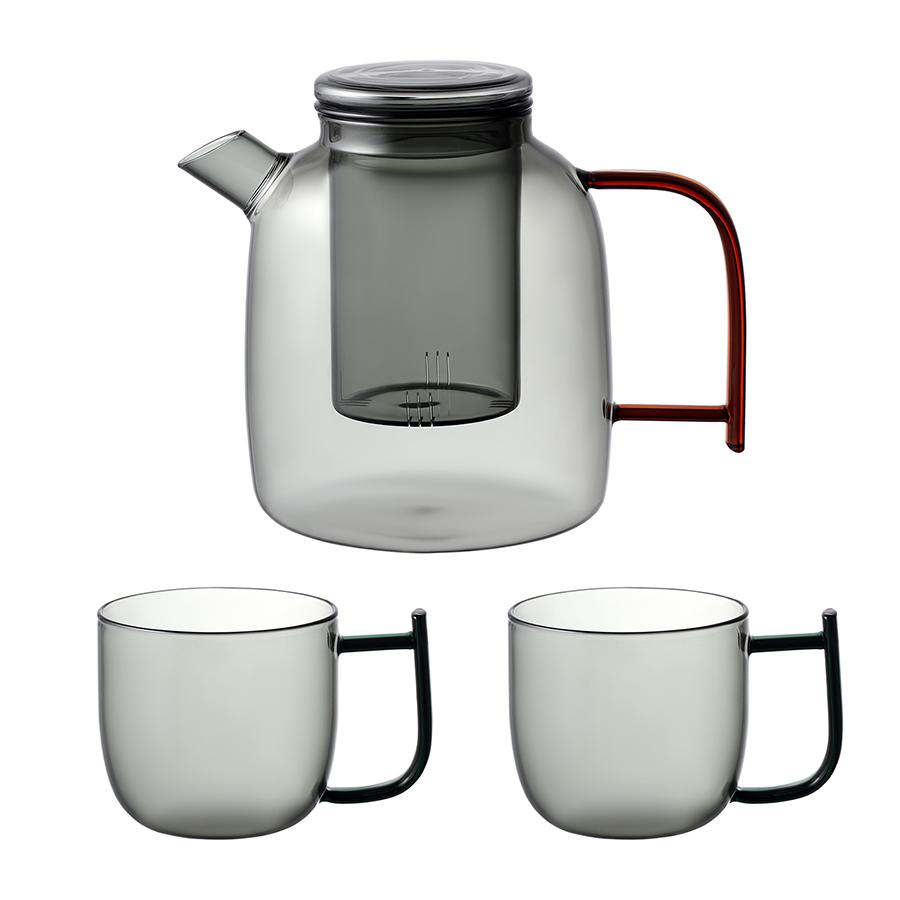 Набор чайный Misty – прекрасный выбор для ценителей стиля минимализм. Заварочный чайник и чашки из затемненного стекла привнесут в сервировку интересный акцент и будут отлично сочетаться с любой посудой. Особенности и преимущества: - Боросиликатное стекло, из которого выполнена посуда, обладает повышенной прочностью и термостойкостью. - Материал легко очищается от загрязнений и не содержит в своем составе вредных соединений. - Специальный стеклянный фильтр задерживает чайные листья и кусочки фруктов, позволяя получить чистый напиток. Материал: боросиликатное стекло. Объем чайника: 1,5 л. Объем чашек: 380 мл. Размеры чашки: 12,7х9х8,5 см. Размеры чайника: 21,5х14,3х16,7 см. Можно мыть в посудомоечной машине в деликатном режиме. Запрещается использование абразивных материалов и агрессивной бытовой химии.
