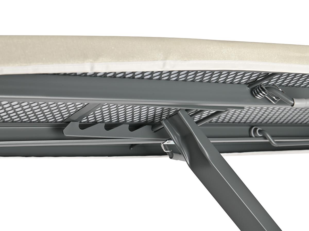 Доска Smart Iron со стальным сетчатым верхом позволит гладить вещи быстро и эффективно, а сам процесс сделает максимально комфортным. Особенности и преимущества: - На рабочей поверхности шириной 46 см легко гладить даже объемные вещи, например, постельное белье или пальто. - На выдвижной термостойкой полке поместится не только утюг, но и парогенератор весом до 10 кг. - Благодаря 7 уровням регулировки высоты (до 88 см) можно настроить ее под любой рост для комфортной работы. - Толстые стальные ножки делают конструкцию надежной и устойчивой. - Специальное порошковое покрытие защищает металл от ржавчины. - Надежный чехол «пять в одном» сделан так, чтобы гладить было максимально эффективно: * прочный верхний слой из 100% хлопка с металлизированной нитью не боится частого использования и увеличивает теплоотдачу; * мягкая прокладка из пенополиуретана создает оптимальный баланс мягкости и упругости; * фетровый слой убирает лишнюю влагу при отпаривании. - Доска быстро складывается и не займет много места при хранении. Материалы: сталь, хлопок, пенополиуретан, фетр, пластик, силикон. Размер гладильной поверхности 134х46 см. Максимальная высота 88 см. Цвет чехла: молочный. Рекомендована сухая чистка чехла.
