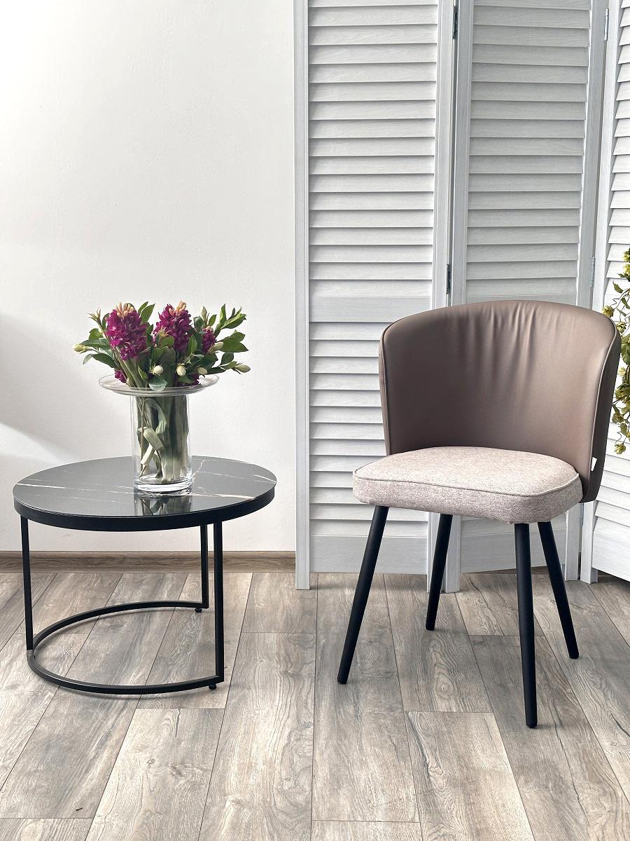 Мебель М-СИТИ Стул МОНЕ цвет Бисквит ROVENA BISCUT ткань / ORAKUL 290 экокожа / Черный каркас арт. 480M05673