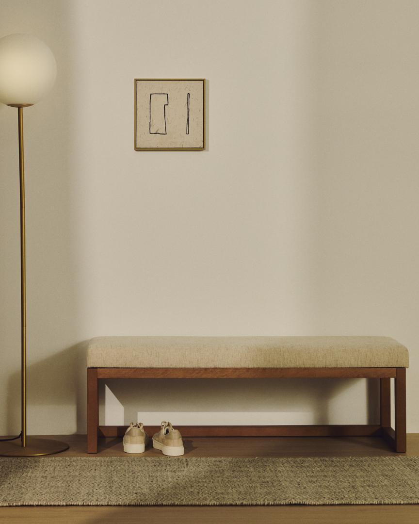 Скамья Loya выделяется своим вневременным дизайном и тщательно подобранным сочетанием материалов, призванных добавить стиль и комфорт любому помещению. Обивка выполнена из высококачественного бежевого шенилла с защитой от пятен. Мягкая и прочная текстура скамьи сохраняется безупречно даже при ежедневном использовании. Каркас из бука обеспечивает тепло и прочность, а сиденье, наполненное пенополиуретаном плотностью 25 кг/м³, обеспечивает комфорт и долговечность. Войлочные вставки в ножках защищают пол.